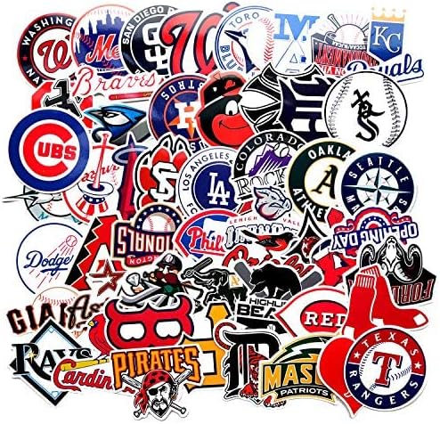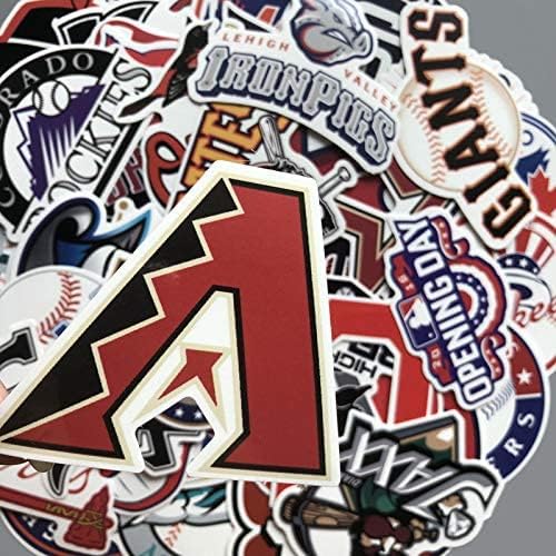 53 قطعة من ملصقات شعار فريق البيسبول، عبوة من بلاستيك PVC المقاوم للماء من الفينيل ولوح التزلج والجيتار وحقيبة السفر ملصقات للباب واللابتوب والامتعة والسيارة والدراجة والدراجة