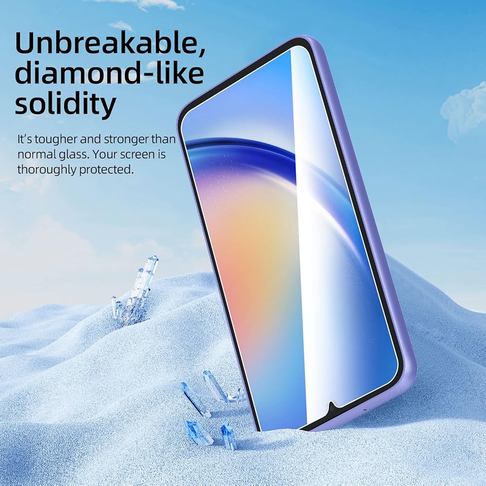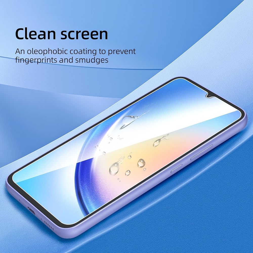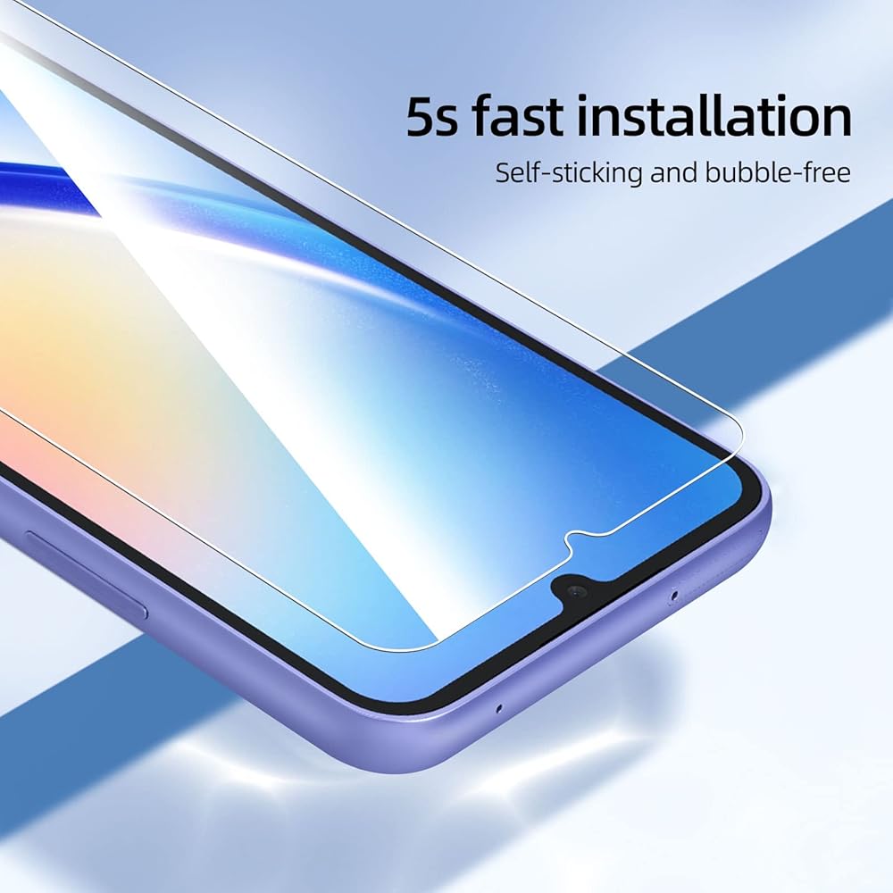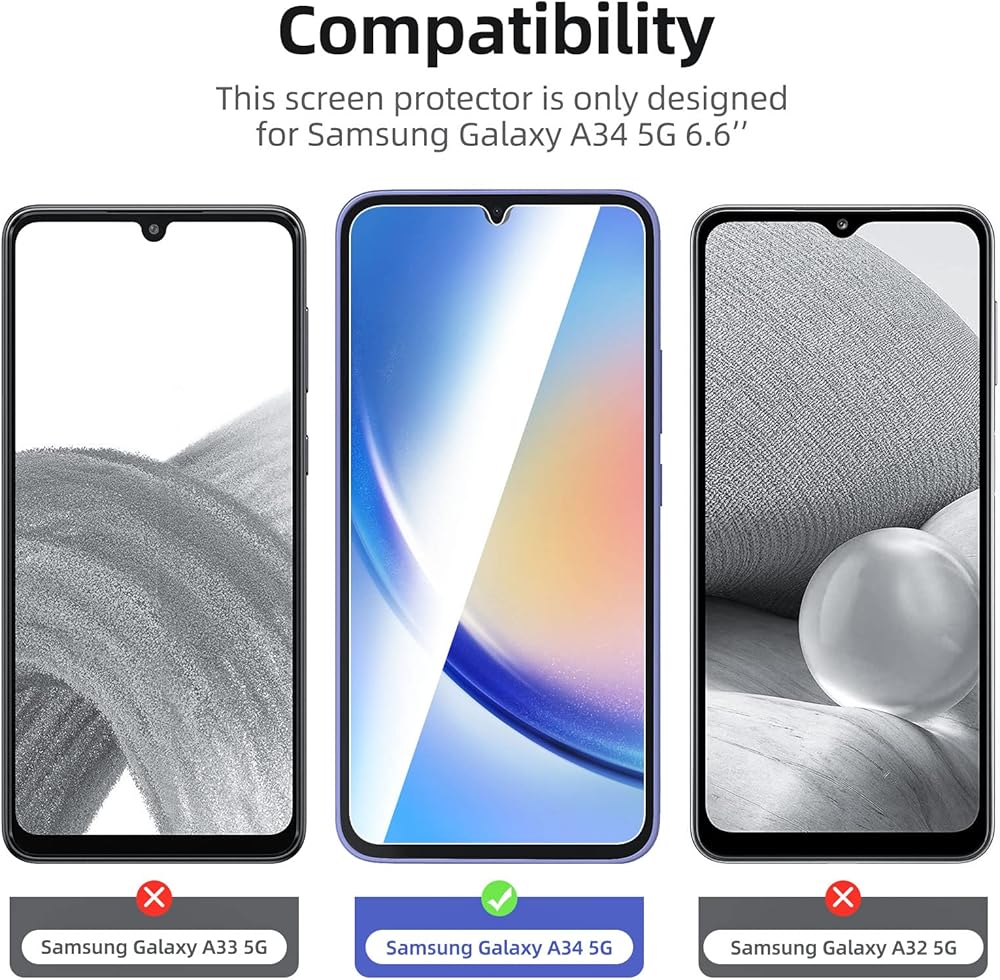 • واقي شاشة من الزجاج المقوى NEW'C Samsung Galaxy A34 5G، لمسة رقيقة: مطلي على الظهر بمادة لاصقة من السيليكون الصلب مما يجعل التثبيت سهلاً ويعلق الفيلم بقوة حتى لا يؤثر على حساسية شاشة اللمس