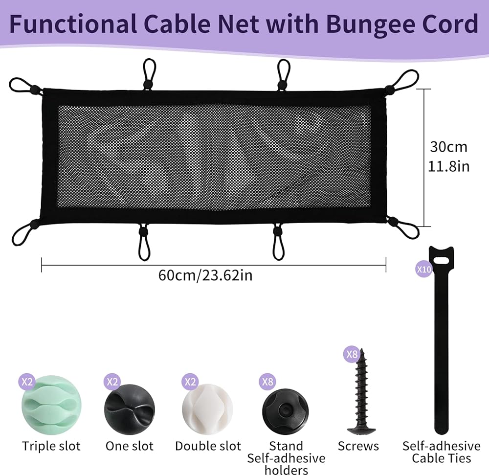 شبكة بوليستر مقاومة للهب】تبدد الحرارة بالتساوي لحماية كابلات ومخارج المعدات الإلكترونية القيمة. توفر الحواف الملفوفة بدقة والشبكة القوية تجربة تخزين جيدة لتعليق الأسلاك لتحسين كفاءة المكتب.