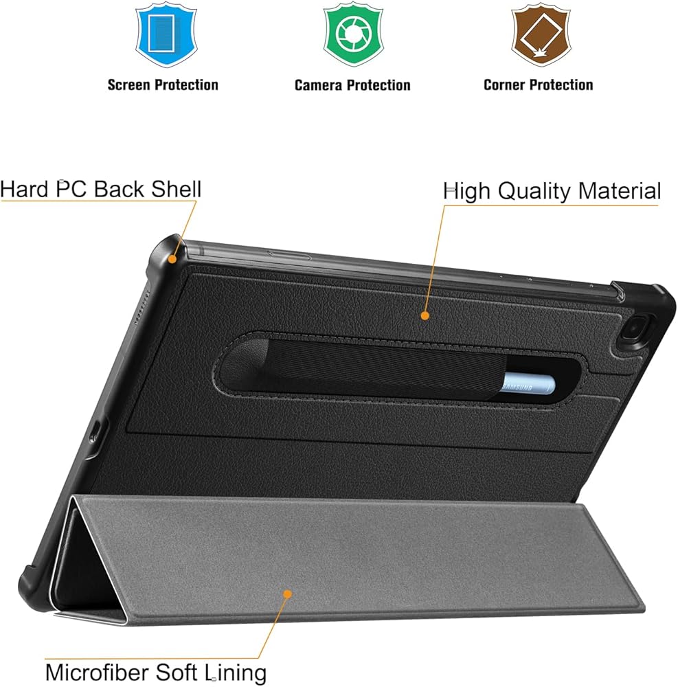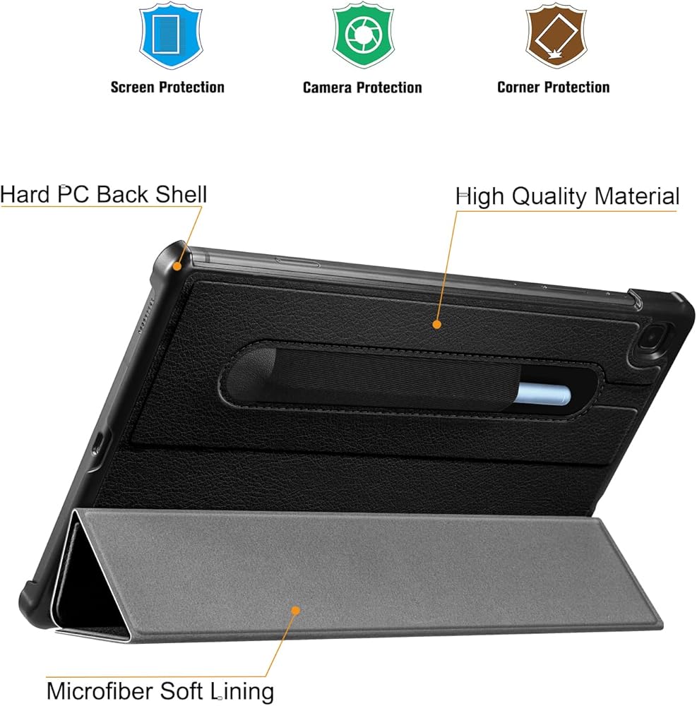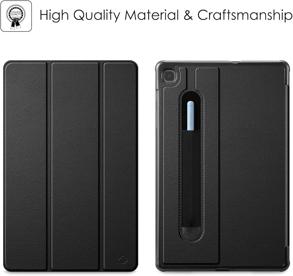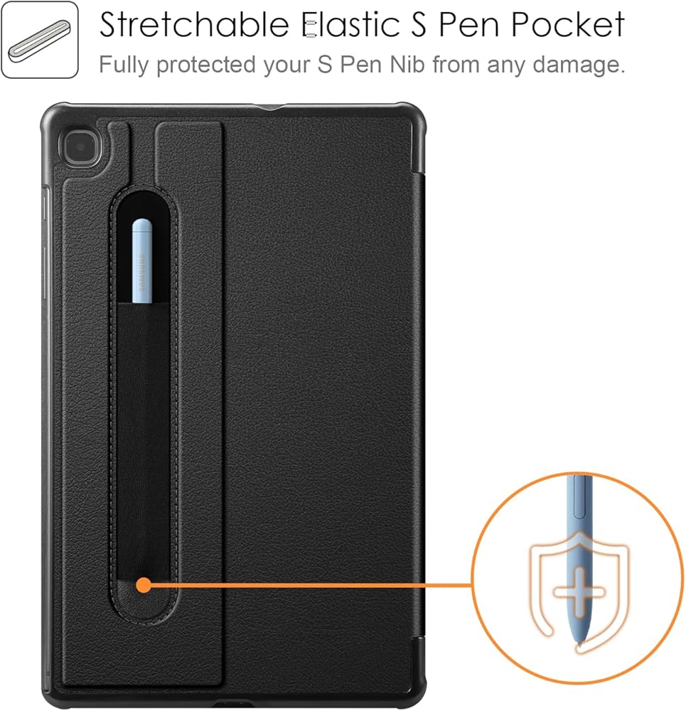 حافظة Fintie رفيعة لجهاز سامسونج جالاكسي تاب S6 لايت مقاس 10.4 بوصة موديل 2022/2020 (SM-P610/P613/P615/P619) مع حامل قلم S - غطاء خلفي صلب خفيف الوزن بحامل ثلاثي الطي، استيقاظ/نوم تلقائي، أسود