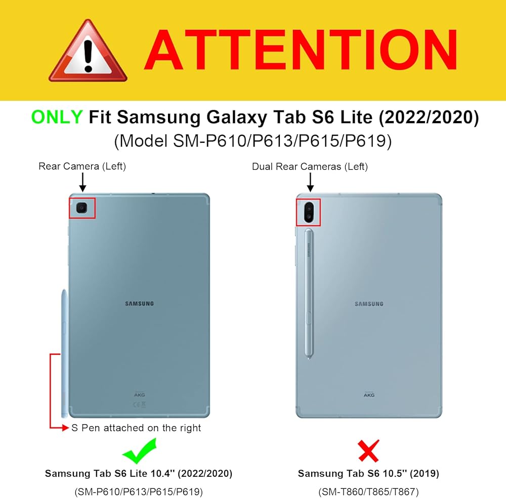 التوافق - يتوافق هذا الجراب مع جهاز Samsung Galaxy Tab S6 Lite مقاس 10.4 بوصة طراز SM-P610/P613/P615/P619 2022/2020. لن يعمل مع أي طراز آخر من الأجهزة