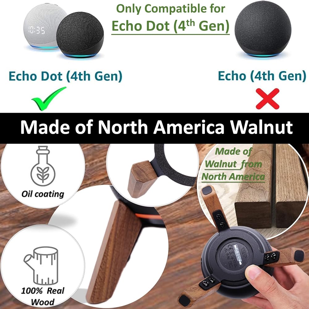 👉【Unique Design】Not worry about any discordant;The wooden stand with right size can match with Dots(4th Gen) well, it's a simply and stylish design to use for office, home, garden etc. it's good for sound and easy to install;