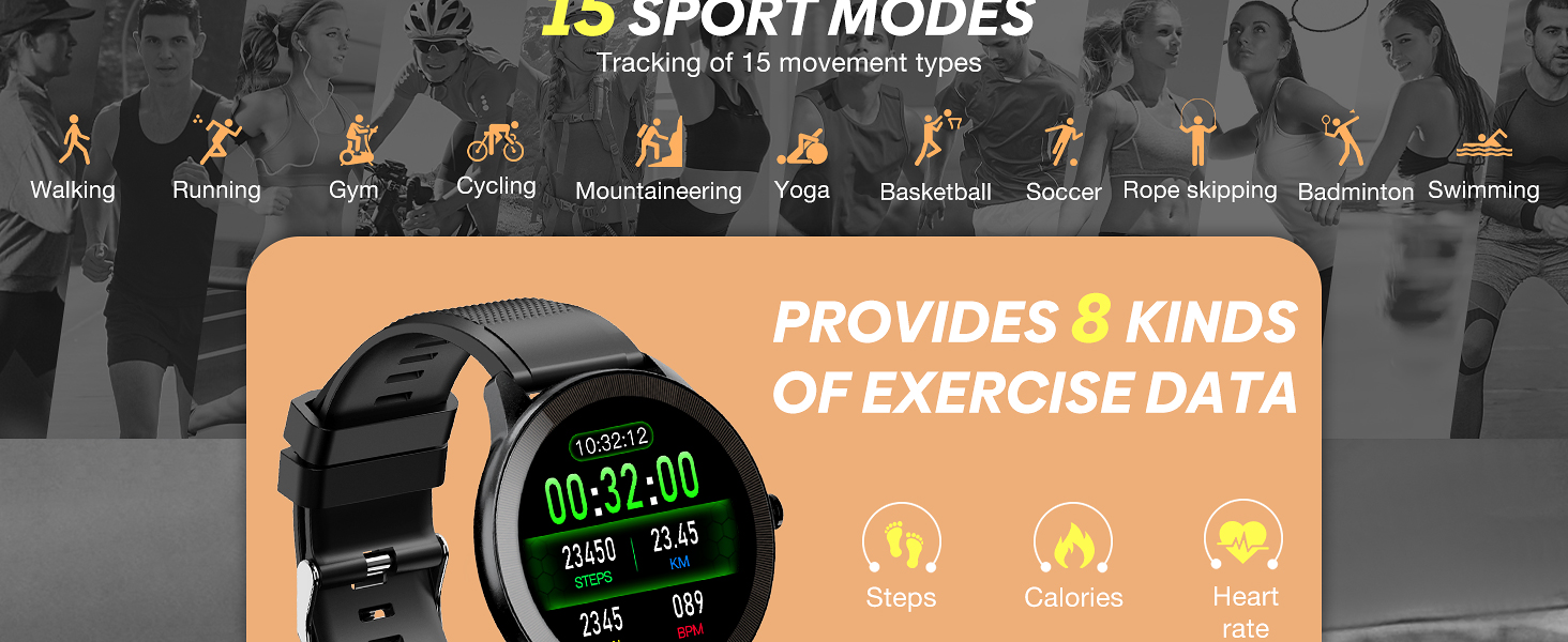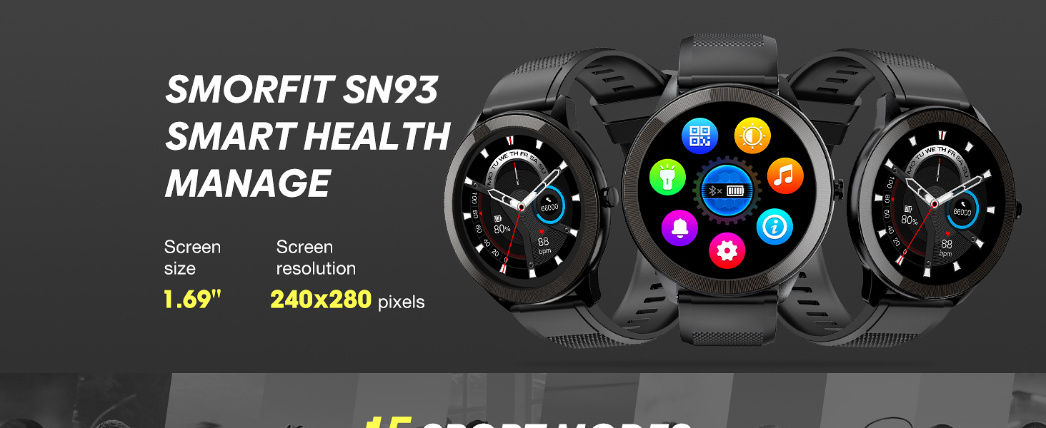 SMORFIT SN93 fitness tracker is for fitness enthusiasts who like sports and people who care about their health. You can track your sleep, daily steps, heart rate, and blood oxygen through the watch. The watch helps you track your running and cycling miles.