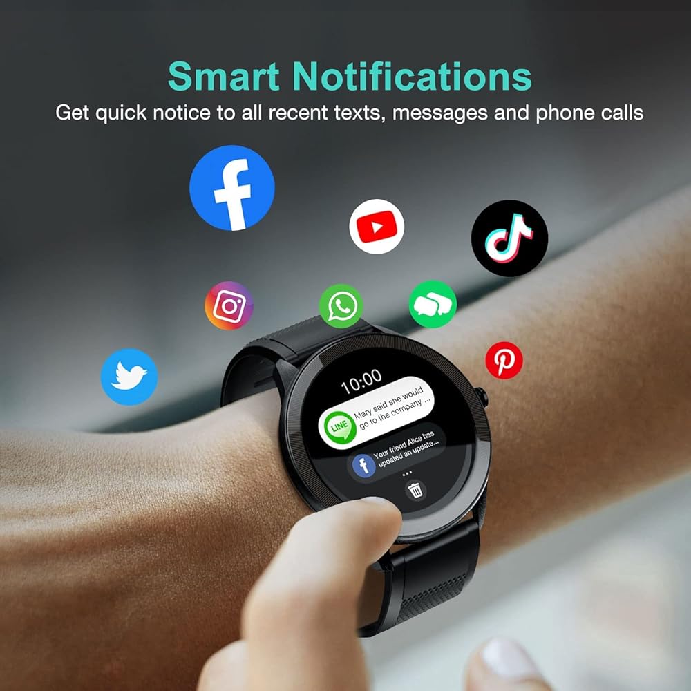 The watch has many sports functions and is easy to use by simply touching the display to switch back and forth. The watch is connected via Bluetooth and the phone APP. When your phone receives a message or call, the watch will vibrate to remind you . You can view 5 latest phone messages, which is from SMS, Facebook, Whatsapp, Twitter, Instagram, Facebook Messenger, LinkedIn, etc.
