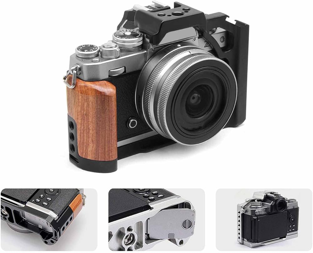 Camera Cage for Nikon ZFC, Aluminum Alloy Camera Video Cage with Wood Handle, with 1/4 Inch 3/8 Inch Screw Hole Cold Shoe Mount for Microphone and Light