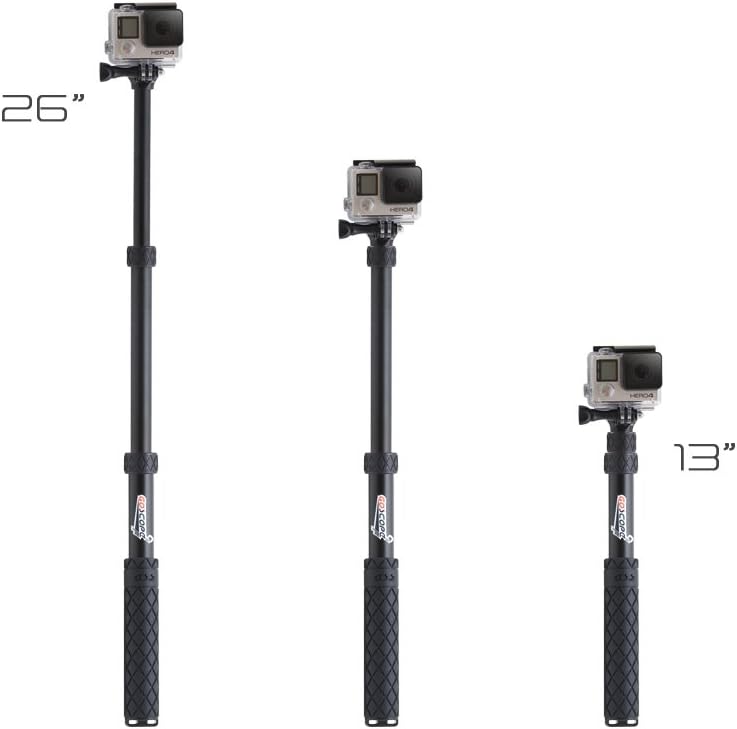 GoScope Boost ranges from 13" out to 26". Comes ready to attach to all Action Cameras (Including Hero10). Mounts on two sides for connecting 2 cameras. Removable wrist strap and removable remote mount. Easily remove water from the bottom of the pole by unscrewing the wrist strap assembly. Constructed of magnesium aluminum for strength in salt water or super cold conditions.