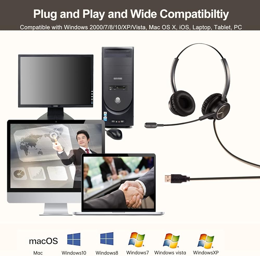 Emaiker USB Computer Headset/USB PC Headphone/Skype Headset/Office Headset USB/Call Center Headset /Dragon Headset are specially designed for Working from Home, Remote Work, Online Courses, Education, Training, Offices, Call Center, Conference Calls, Webinar Presentation ,Gaming and More. They are plug&play for all UC platforms.