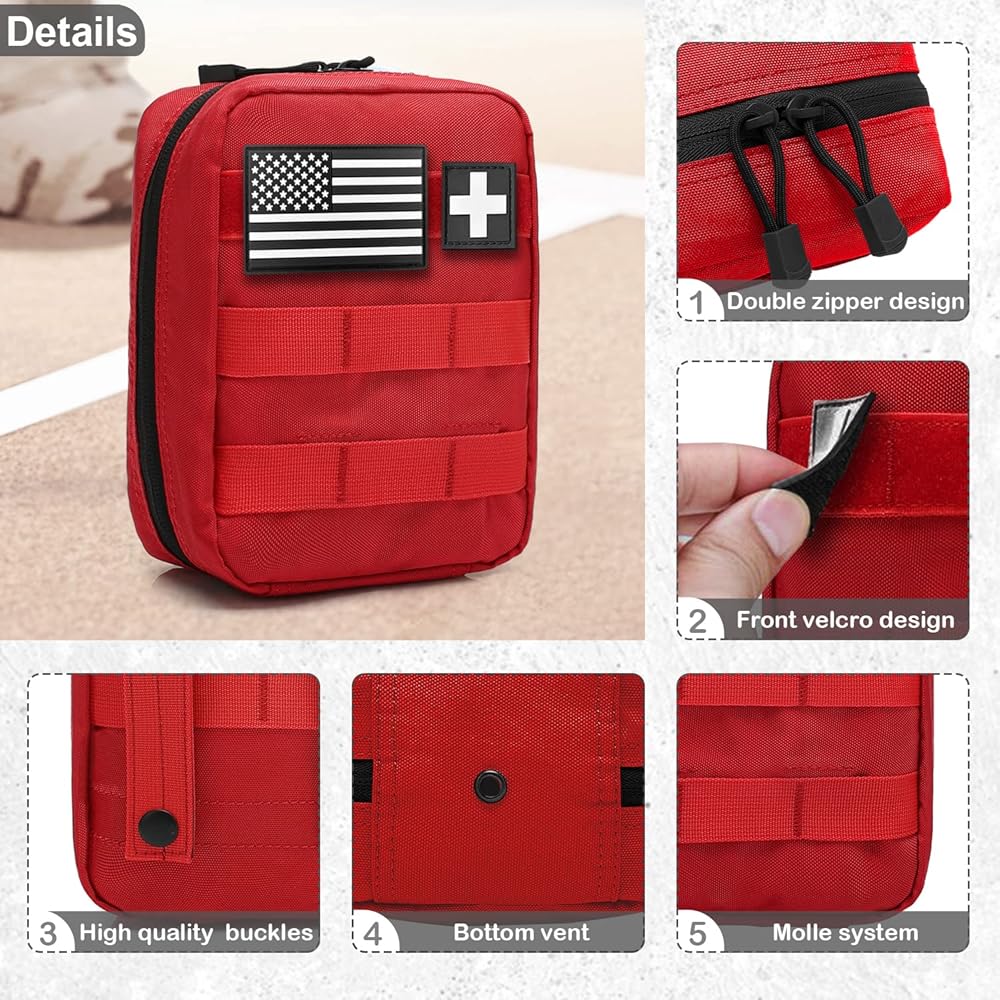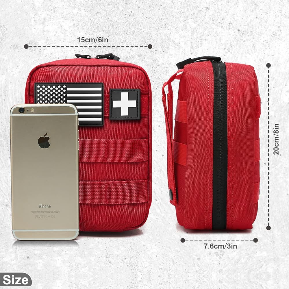 • حجم صغير وسعة كبيرة: حجم حقيبة الإسعافات الأولية MOLLE ifak: 7.8 بوصة ارتفاع × 6.1 بوصة عرض × 2.4 بوصة عمق / 20 × 15.5 × 6 سم. مع مساحات متعددة لتخزين مجموعات الإسعافات الأولية المهمة. حجم صغير، سهل الحمل. السعة الكبيرة يمكن تخزين المزيد من العناصر التي تحتاجها عند الخروج، مثالية للتخييم والتسلق والسفر.