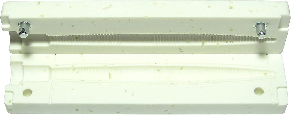 High quality artificial stone. Stone powder mixed with polymers to create a low-porous and durable material, which is a perfect fit for soft plastic lure making molds.