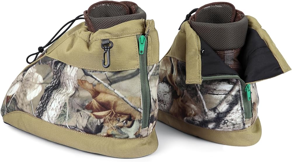 2. تصميم مموه فعال: تمتزج بسلاسة مع بيئتك مع نمط التمويه الحقيقي الخاص بنا. تضمن أغطية أحذية الصيد هذه أن تبقى مخفيًا داخل دائرة نصف قطرها 5 أمتار. مثالية للصيد ومراقبة الطيور وتصوير الحياة البرية.