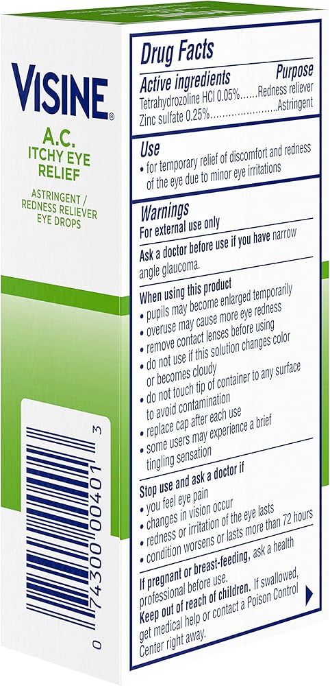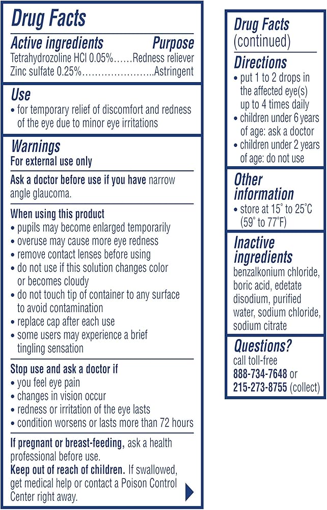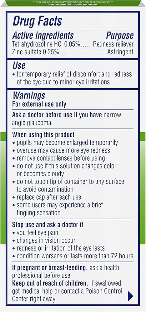 معقم. قابض للبشرة. يخفف من الحكة والحرق والعينين المائية، بسبب ما يلي: حبوب الطلع والغبار والرماد. قد يعاني بعض المستخدمين من شعور بوخز بسيط. للتخفيف المؤقت من عدم الراحة والاحمرار في العين بسبب تهيجات العين البسيطة.