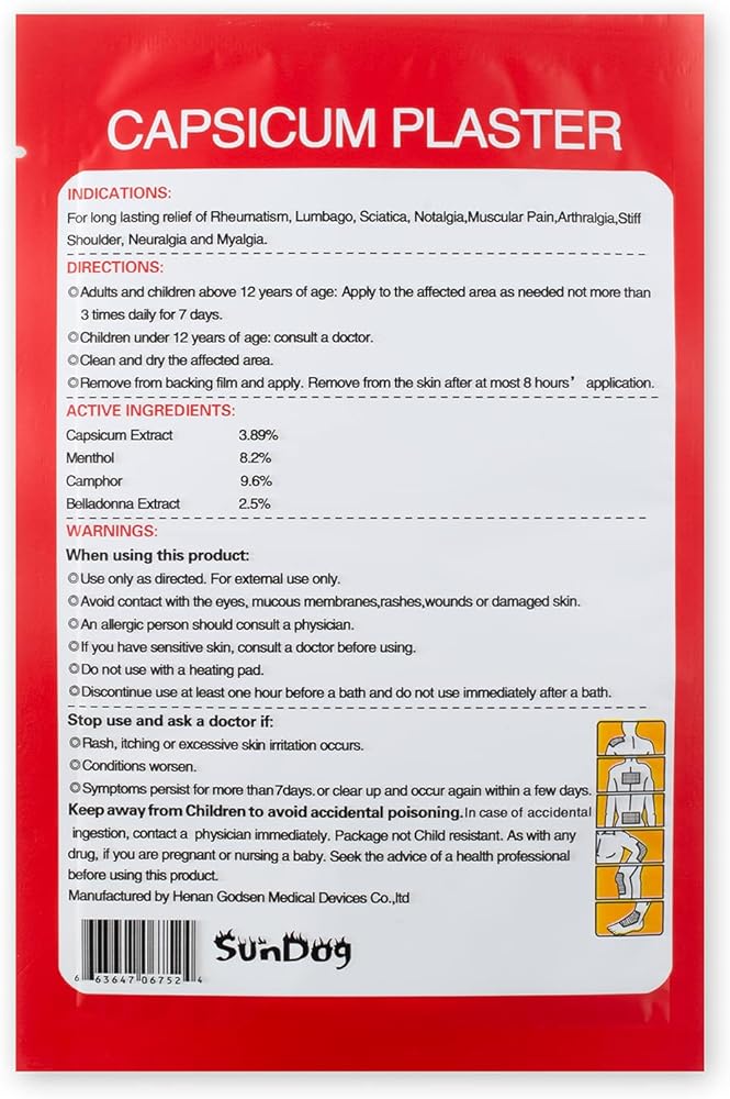 يستخدم الكابسايسيم الطبيعي بالكامل، وهو المركب الأساسي في الفلفل الحار والذي ثبت سريريًا أنه يقلل من الإحساس بالألم، رقعة آمنة وطبيعية وغير مسببة للإدمان توفر جرعة فعالة من مستخلص الفلفل، وتسمح الرقعة للبشرة بالتنفس بفتحات متعددة.