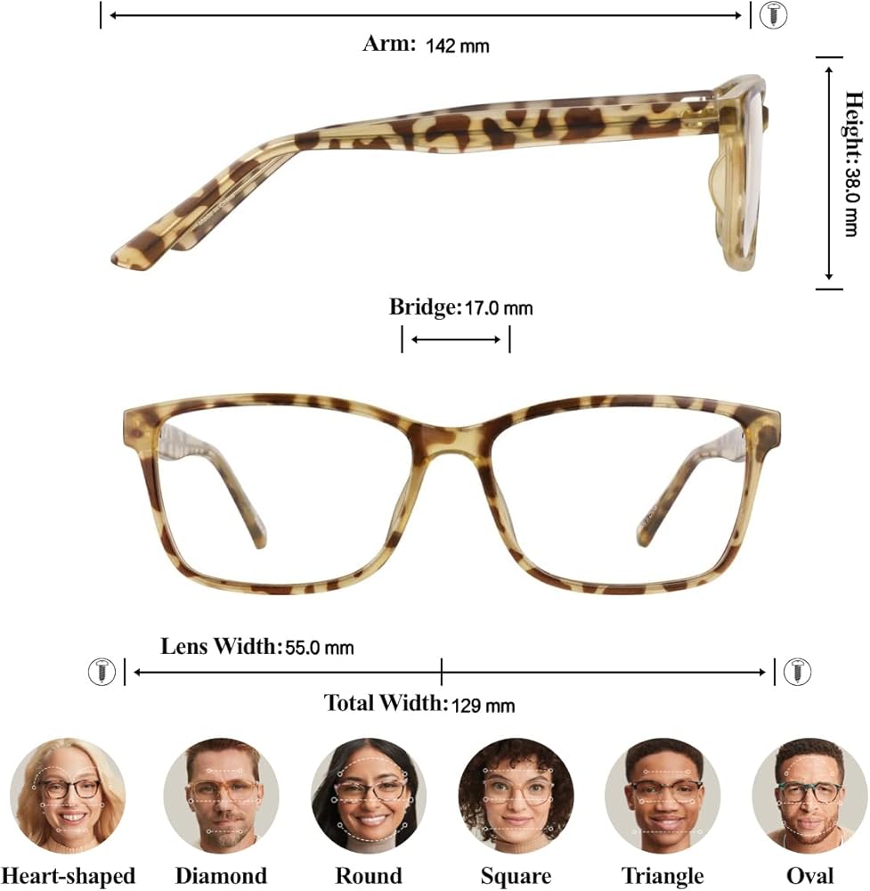 [تصميم أنيق]: إطار النظارات المستطيل مصنوع من مواد عالية الجودة مع مفصلات متينة مناسبة لمختلف أشكال الوجه ويوفر حماية أفضل للعين. يجعلك مظهر السلحفاة الأنيق تبدو ساحرًا وأكثر روعة. الإطار المريح للغاية ومقاوم للاهتراء مناسب لكل من الرجال والنساء.