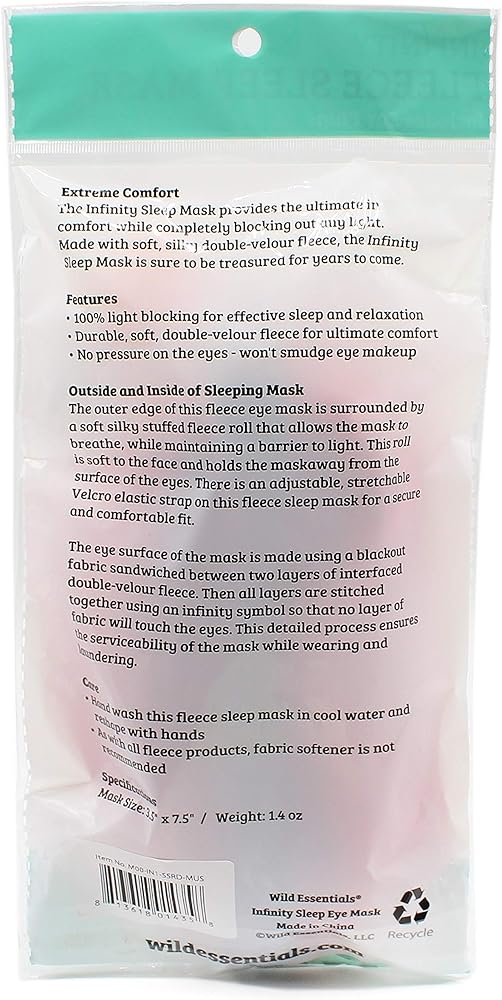 The Infinity Sleep Mask provides the ultimate in comfort while completely blocking out any light. Made with soft, silky double-velour fleece, the Infinity Sleep Mask is sure to be treasured for years to come.