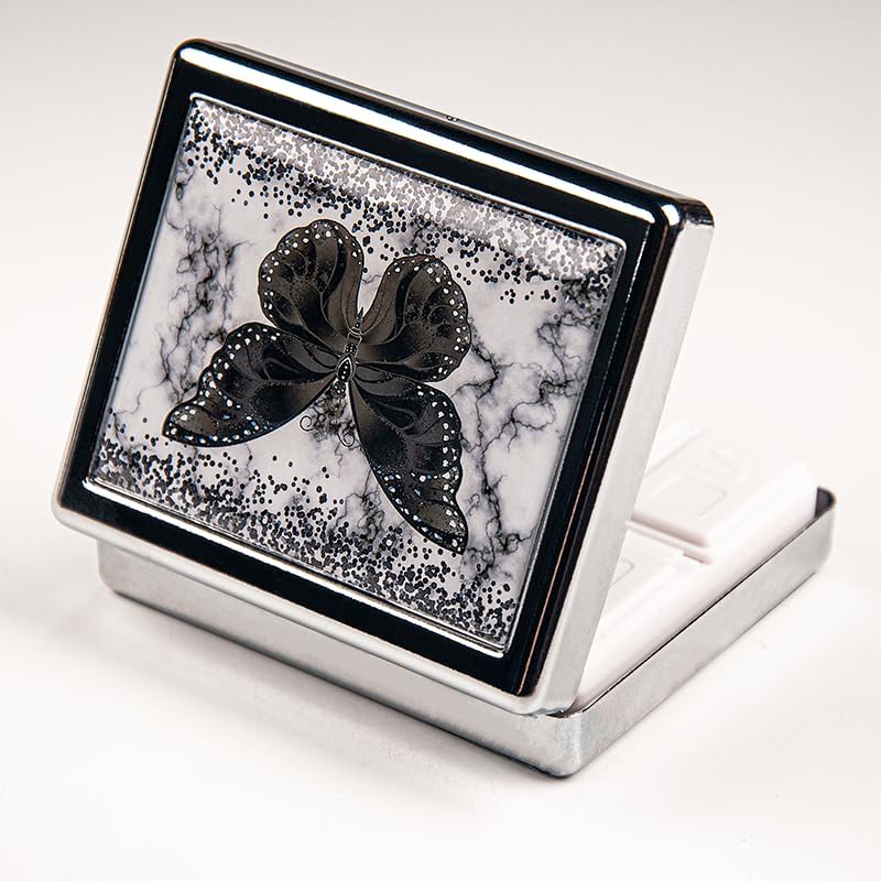 • هذه جودة متجر مجوهرات جديدة تمامًا. صندوق حبوب الدواء يأتي في صندوق وهو من النحاس الصلب المطلي بالكروم والفضة اللامعة.