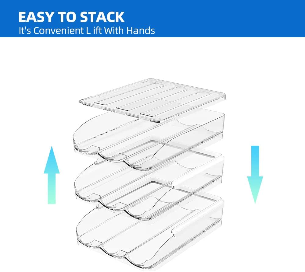 صينية بيض الثلاجة مرئية بوضوح: تصميم صينية البيض الشفاف بلون القهوة يجعل البيض بأكمله صافية في لمحة! كل طبقة يمكن أن تحمل 18-21 بيضة، وحجم كل طبقة 28.4 سم طول × 21.5 سم عرض × 7.1 سم ارتفاع.