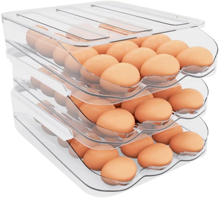 تعتمد حاوية البيض للثلاجة على تصميم إمالة 7 درجة. عندما تخرج البيض، ستلف البيض المتبقية بشكل تلقائي، ولن تحتاج إلى فتح الغطاء في المرة القادمة التي تخرج فيها البيض.