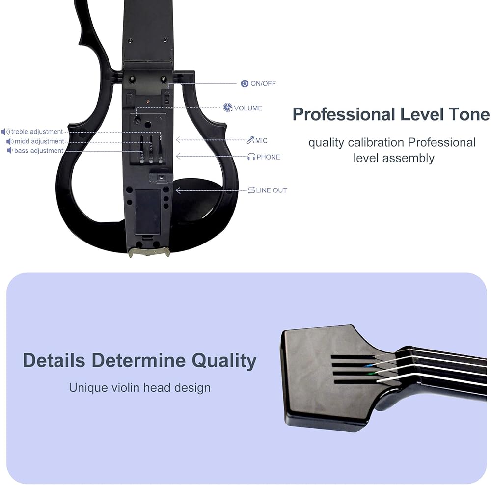 ممارسة مرضية وأداء مثير: الكمان الكهربائي الصامت الاحترافي يناسب المبتدئين تمامًا ليجلب لحظات هادئة للعائلات، أثناء وقت التعلم. باستخدام سماعات الرأس، يمكنك الانغماس في الألحان السعيدة، دون إزعاج الآخرين، والتقدم بسرعة. إنها قابلة للتوصيل للعب بصوت أعلى، وإظهار موهبتك الموسيقية على المسرح/الحفلة