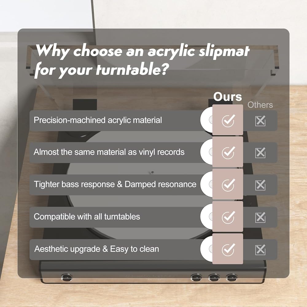 حصيرة الفينيل المنزلقة تعمل على تحسين جودة الصوت: هذه السجادة المنزلقة المصنوعة من الفينيل الأبيض مصنوعة بدقة من الأكريليك. بما أن الأكريليك له خصائص مشابهة لسجلات الفينيل، فإن حصيرة القرص الدوار المصنوعة من الفينيل هذه هي ترقية أساسية لهواة جمع الفينيل لتحسين جودة الصوت