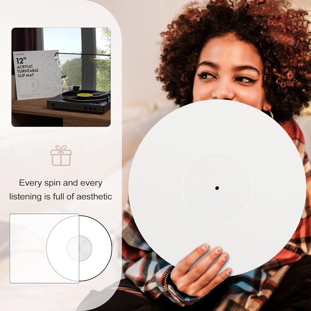 مفارش منزلقة لأقراص الفينيل الدوارة تناسب تمامًا: تناسب هذه السجادة المنزلقة لمشغل التسجيل جميع الأقراص الدوارة القياسية مقاس 12 بوصة، كما تعمل بشكل رائع مع سجلات 33 1/3 دورة في الدقيقة و45 دورة في الدقيقة، ويضمن طبق الأكريليك القابل للدوران بقاء السجلات مسطحة لإخراج صوت أنظف