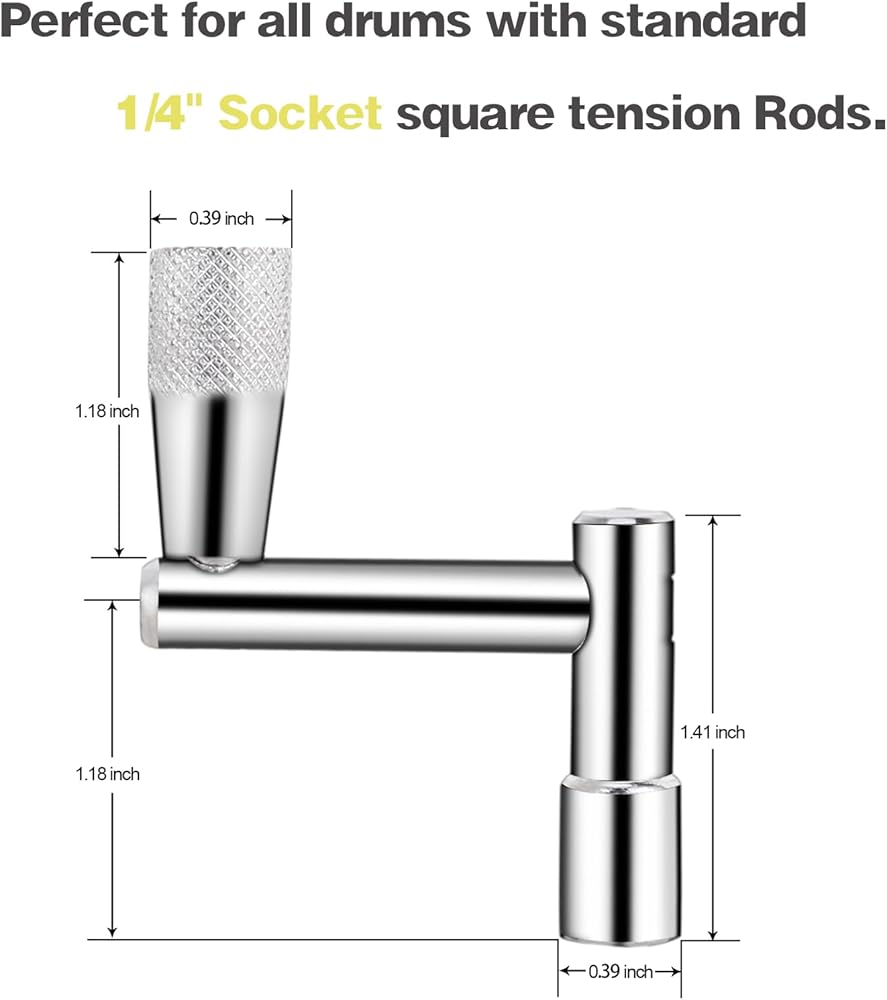 • ✅【Features】:drum keys are sturdy and easy to use. DRUM KEY TOOL - Fit for all drums with standard 1/4" Socket square tension rods, drum tuning key is a must-have for every drummer.