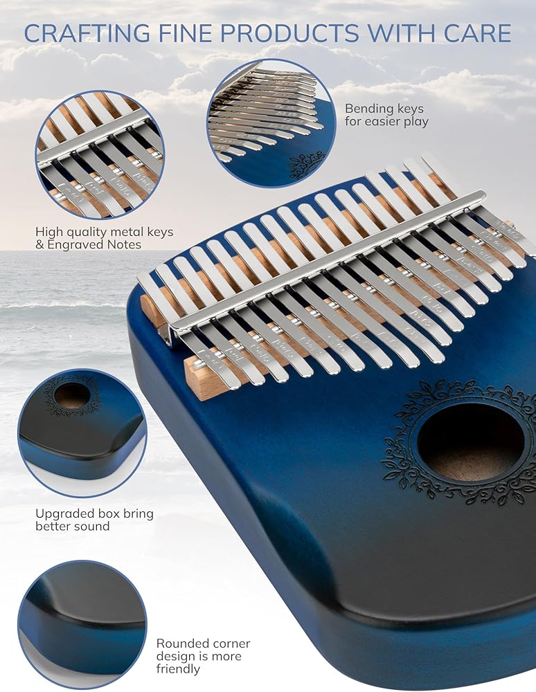 Captivating Sound: The Kalimba's 21 meticulously tuned keys produce rich, soothing tones that resonate with warmth and authenticity, allowing you to create beautiful melodies effortlessly.
