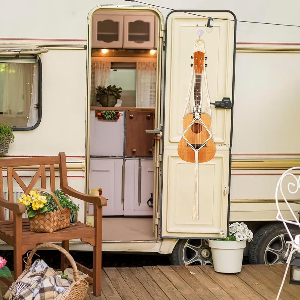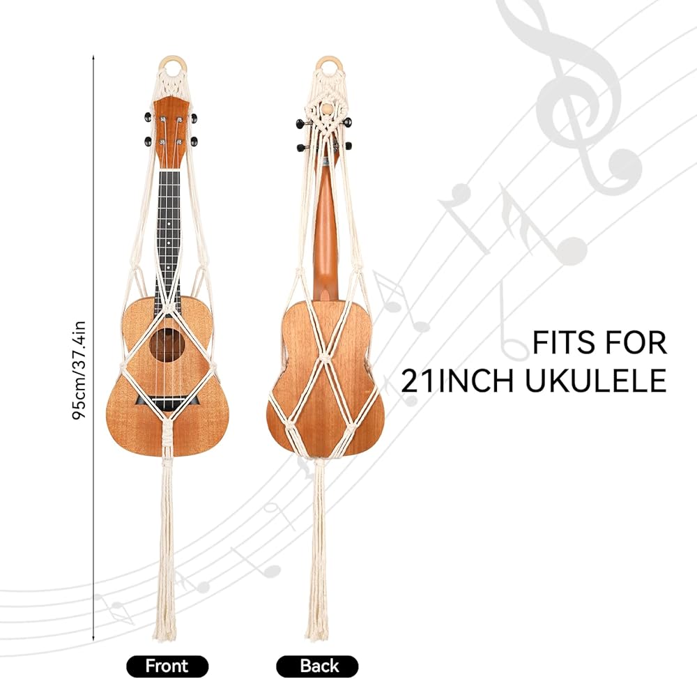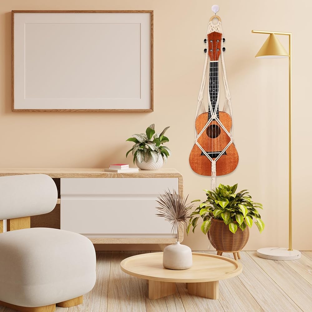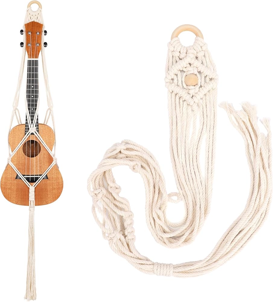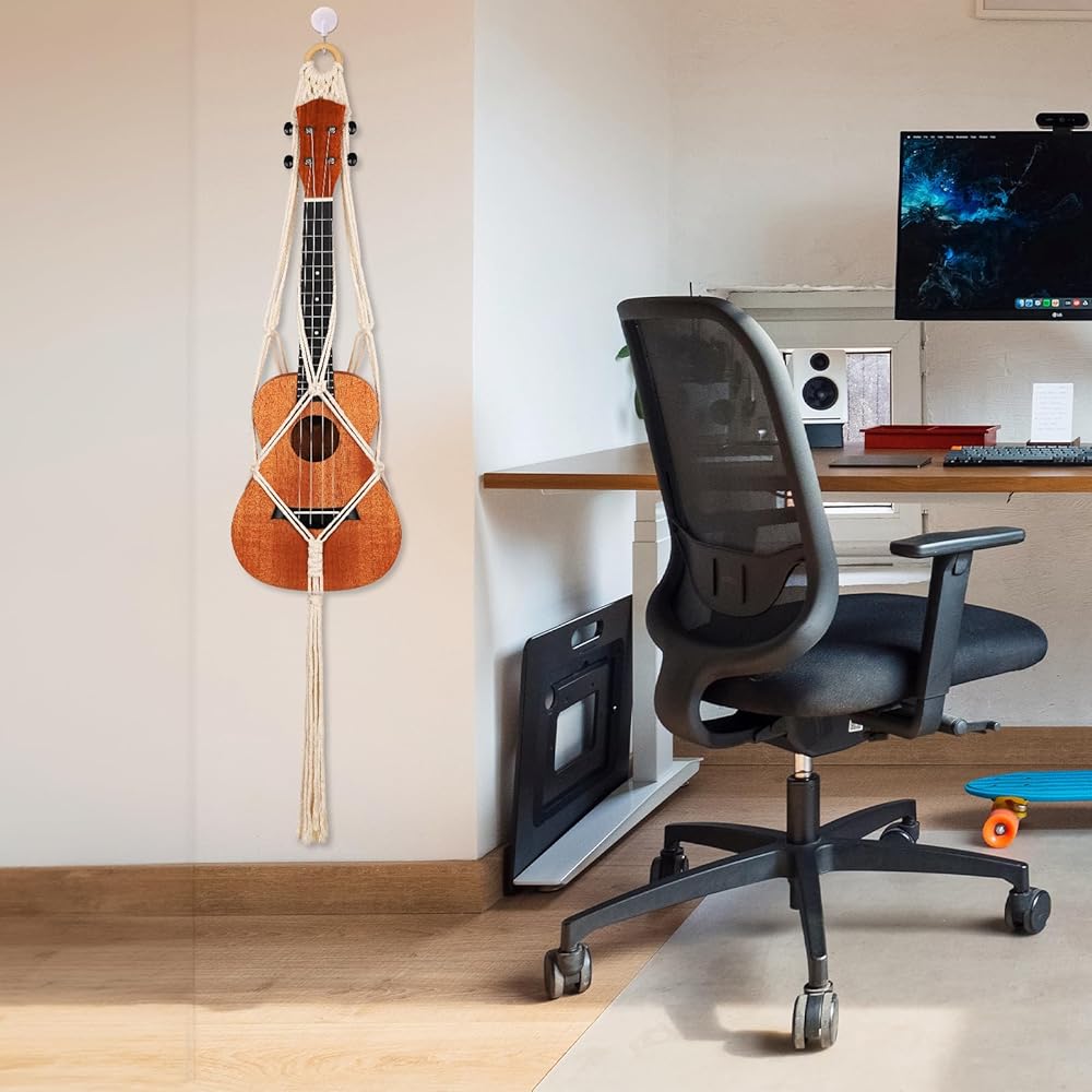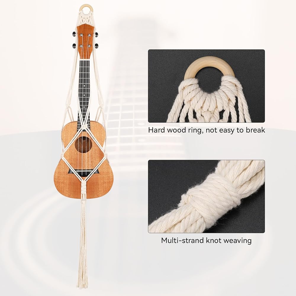 Bohemian Elegance: Our macrame ukulele hanger exudes a boho charm, adding a touch of natural beauty to your home or studio decor. Its intricate lace design creates a stunning visual display on the wall, ceiling, or behind a door.