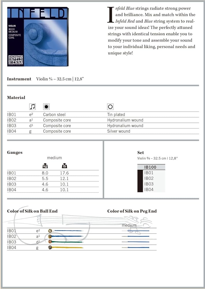 مجموعة أوتار كمان زرقاء من Thomastik-Infeld IB100 مقاس 4/4