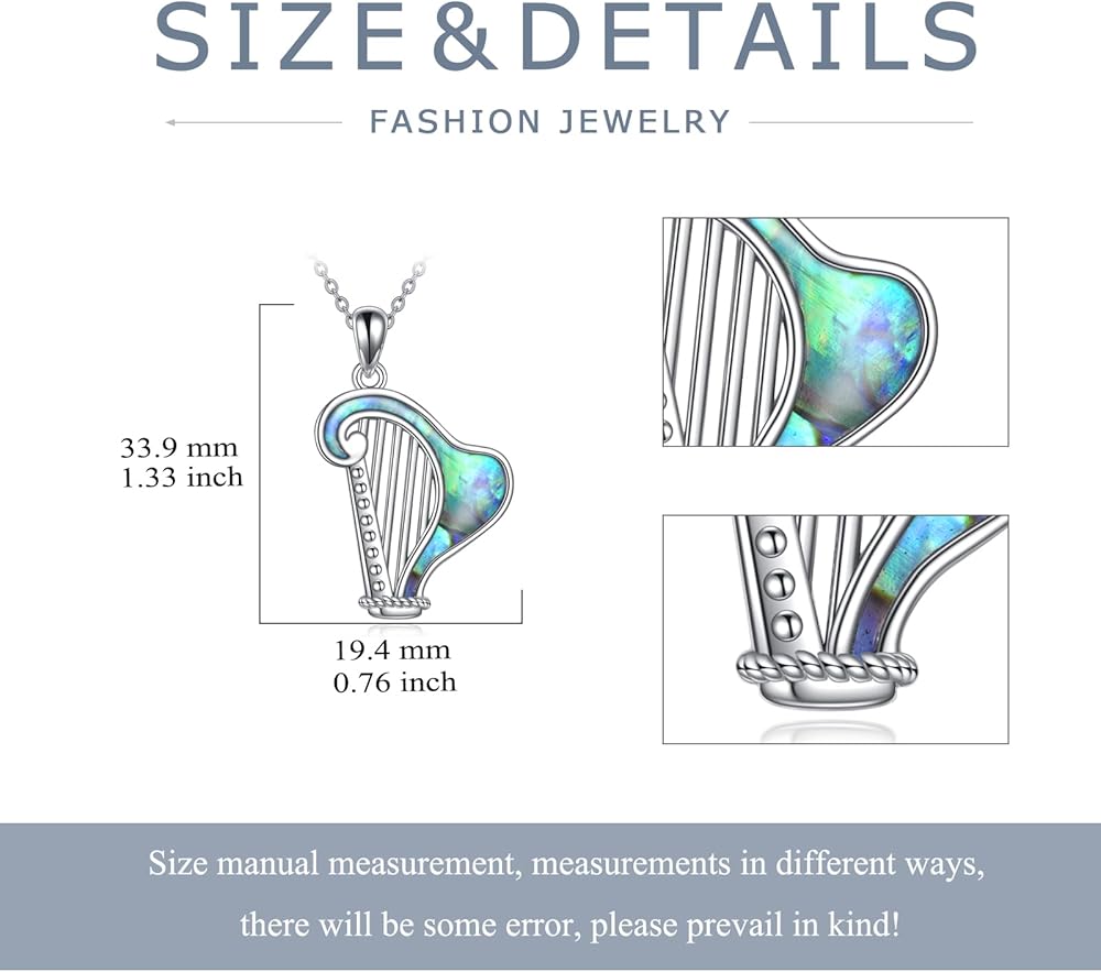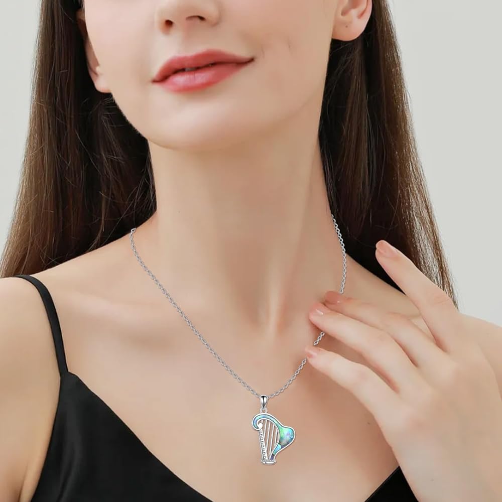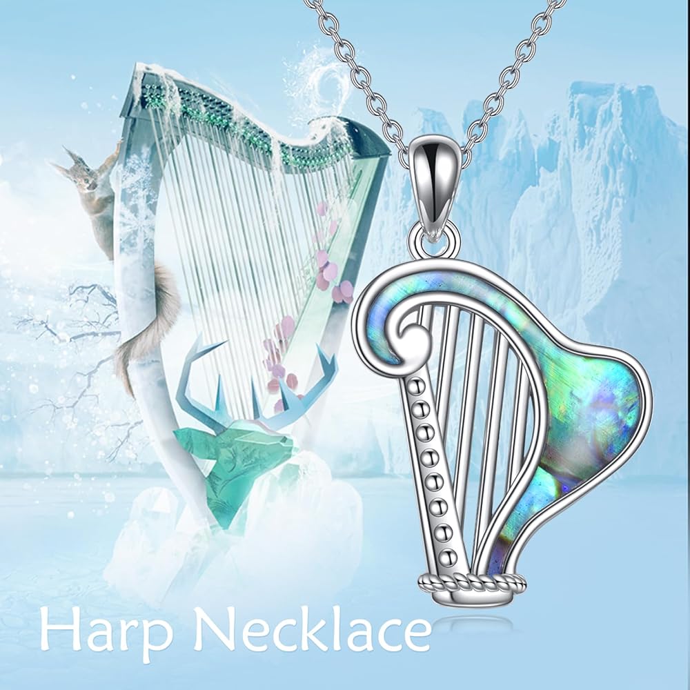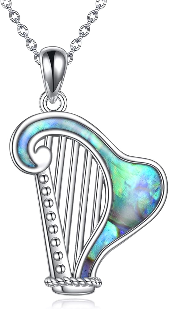 عقد قيثارة من سيلباز، قلادة أذن البحر صدفة القيثارة، قلادة القيثارة الأيرلندية، مجوهرات القيثارة، هدايا للنساء والفتيات ومحبي الموسيقى