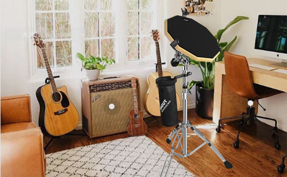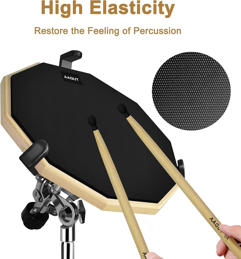 وسادة تدريب الطبول مزدوجة الجوانب مقاس 12 انش: سطح الوسادة يعتمد على مطاط عالي الكثافة ومرن، مما يمنح عازف الطبول شعورًا حقيقيًا بضرب الطبل، والجزء السفلي مصنوع من حصيرة بوليمر ايفا بالإضافة إلى لوح خشبي مضغوط عالي الكثافة، وعزل صوت أقوى، ويوفر قاعدة ثابتة للتدريب.
