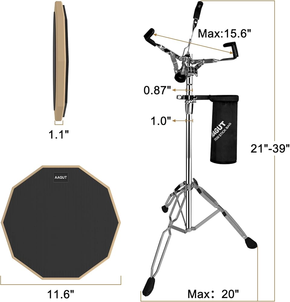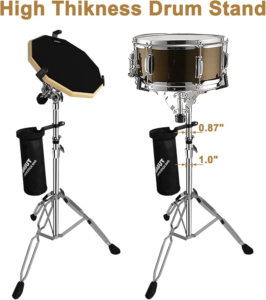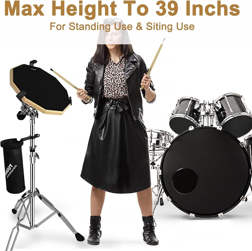 ايجوت وسادة تدريب الطبول بارتفاع قابل للتعديل من 23 انش الى 39 انش، مجموعة وسائد طبل صامتة مقاس 12 انش مع ملحقات الطبول وعصي الطبول وحقيبة حمل، اسود