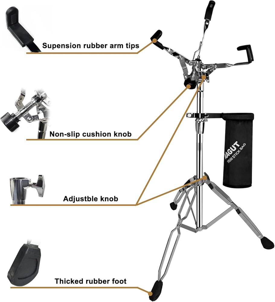 حامل طبل كمين عالي السُمك: تصميم شديد التحمل مع حوامل ثلاثية قوية مزدوجة الدعامات، سلة قابلة للتعديل تناسب الطبول بقطر 10 - 14 انش. قم بزيادة الثبات وتقليل الاهتزاز عن طريق زيادة سماكة قطر الأنبوب إلى 1 انش. يدوم كالجديد.