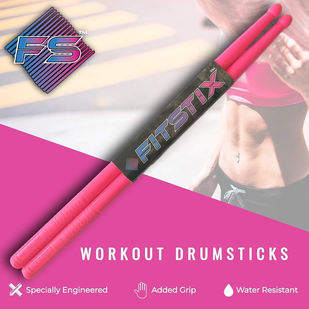 أعواد الطبول FITSTIX™ لفصول اللياقة البدنية والتمارين الرياضية، أعواد الطبول عالية الجودة، تصميم قوي وخفيف الوزن يجعلها إضافة ممتعة لأي تمرين روتيني أو صف دراسي. (الأشعة فوق البنفسجية الوردية بدون PowerGrip)