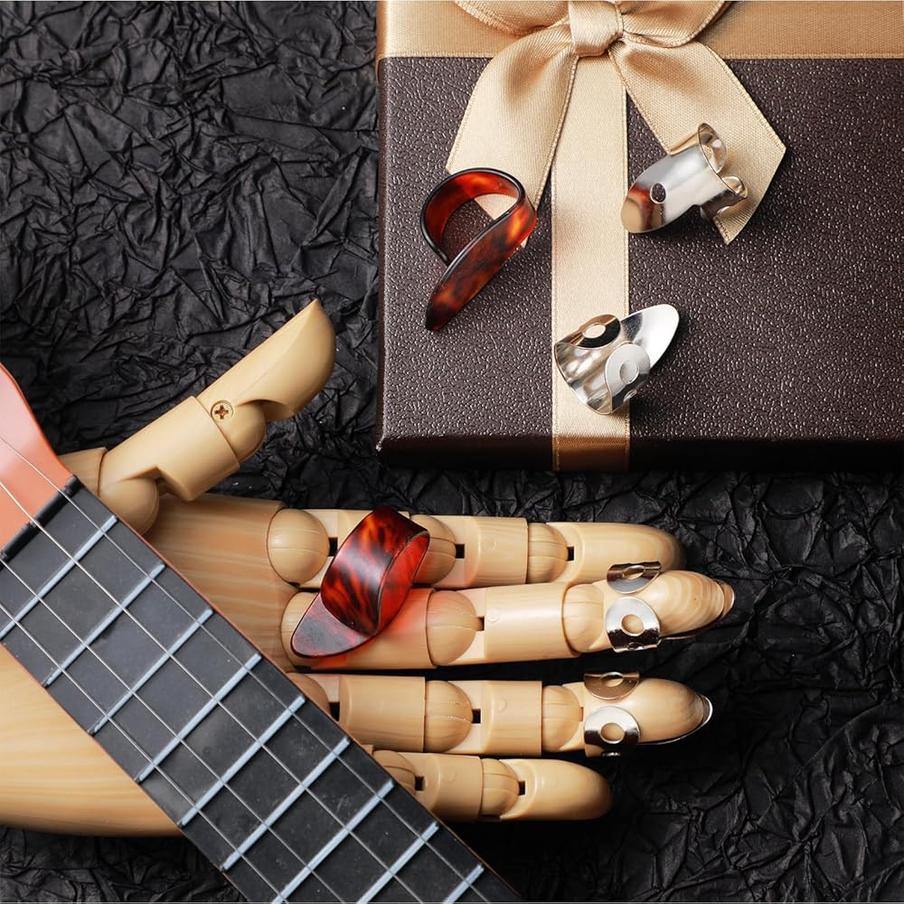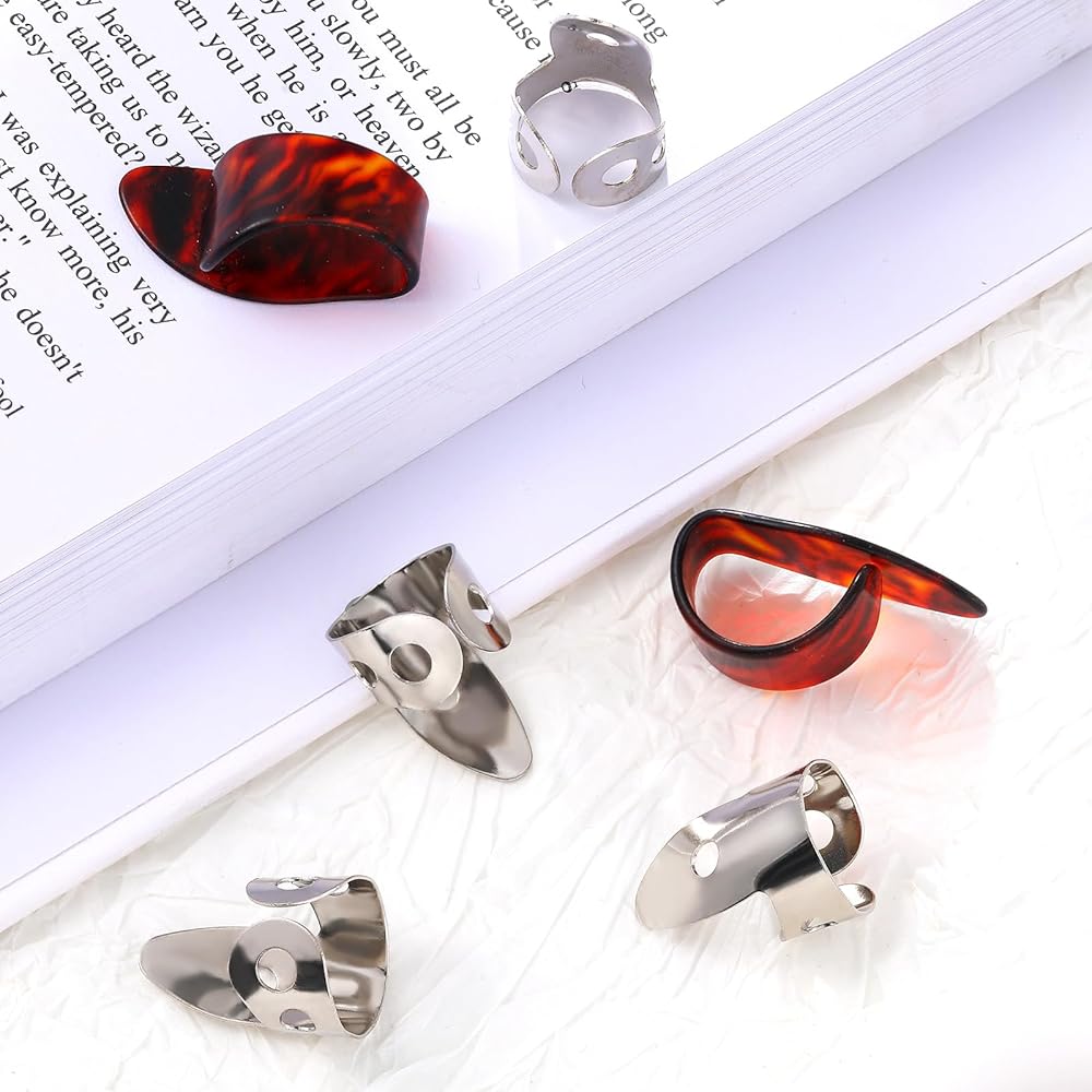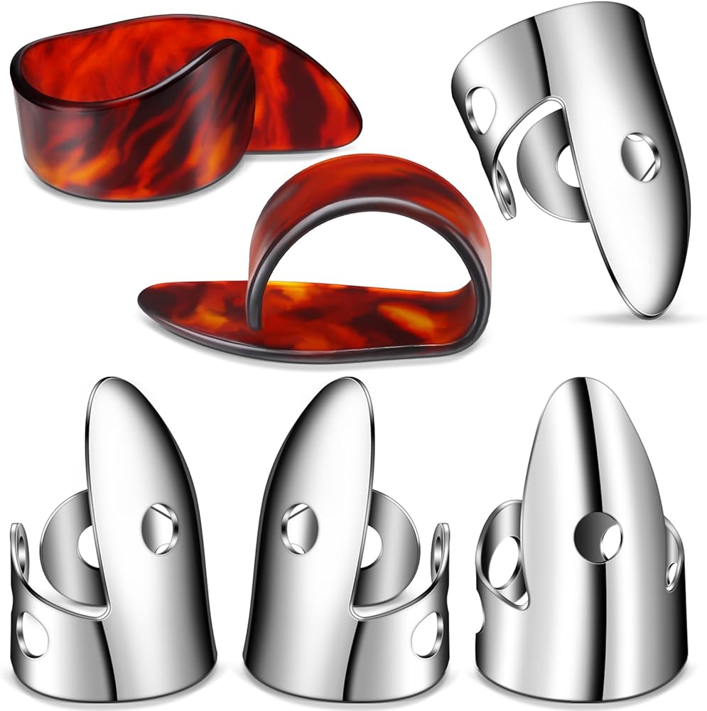 Durable material: these finger picks are main made of stainless steel, sturdy and durable, no pungent smell, appropriate bending amplitude and tightness can fit your fingers well; The guitar thumb picks are made of ABS material, which is comfortable to use, providing you with nice protection for your fingers and fingernails