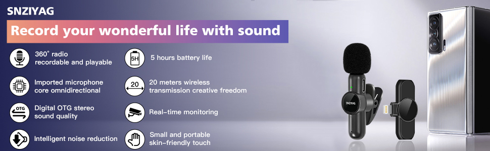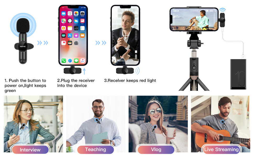 ➤【Long battery life】This Lavalier microphone for iphone built-in rechargeable batteries,provide more than 6 hours of battery life after about 2 hours charging,Ensuring long recording and Live streaming work.