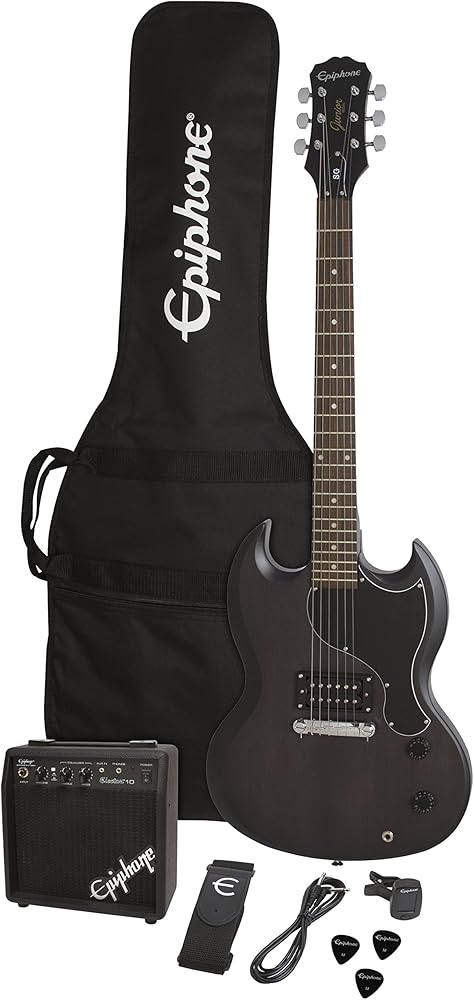 تتضمن حزمة Epiphone SG Junior Pack كل ما تحتاجه لبدء العزف على الجيتار الكهربائي على الفور