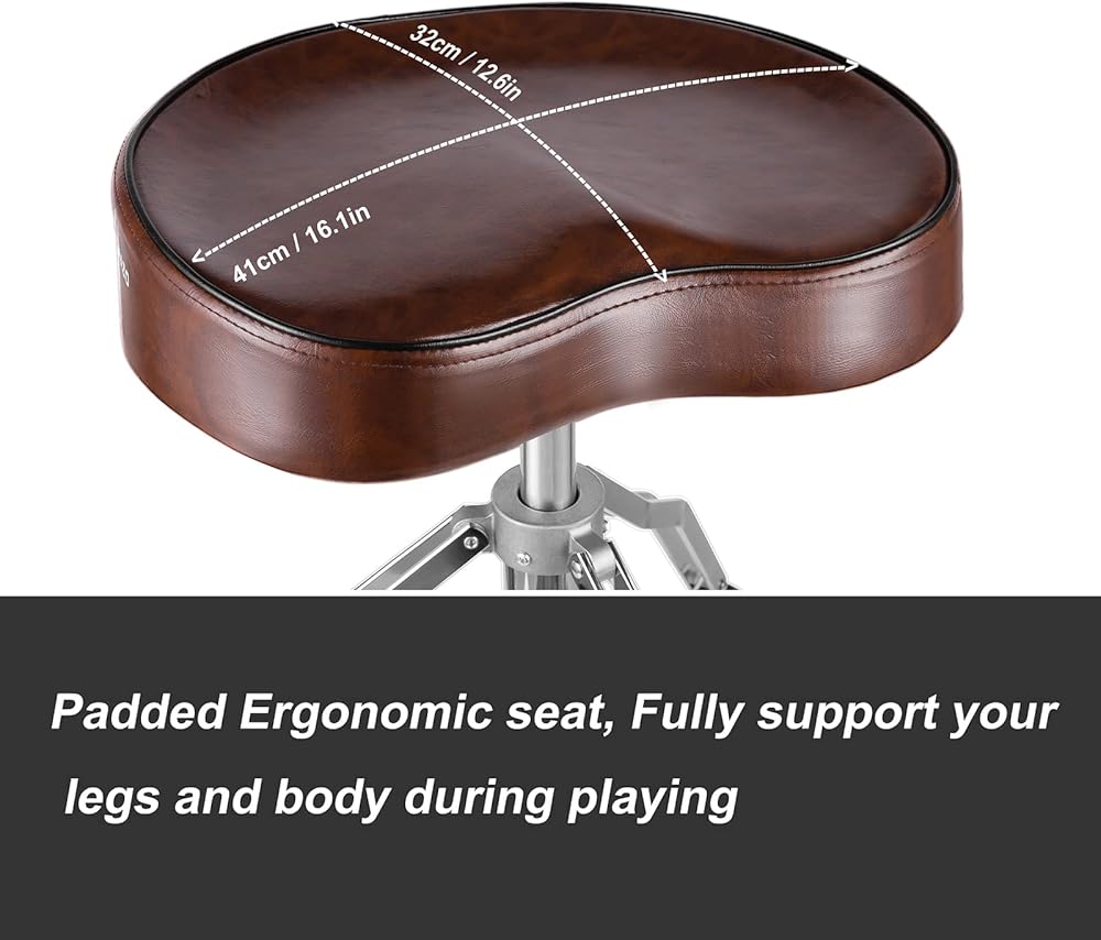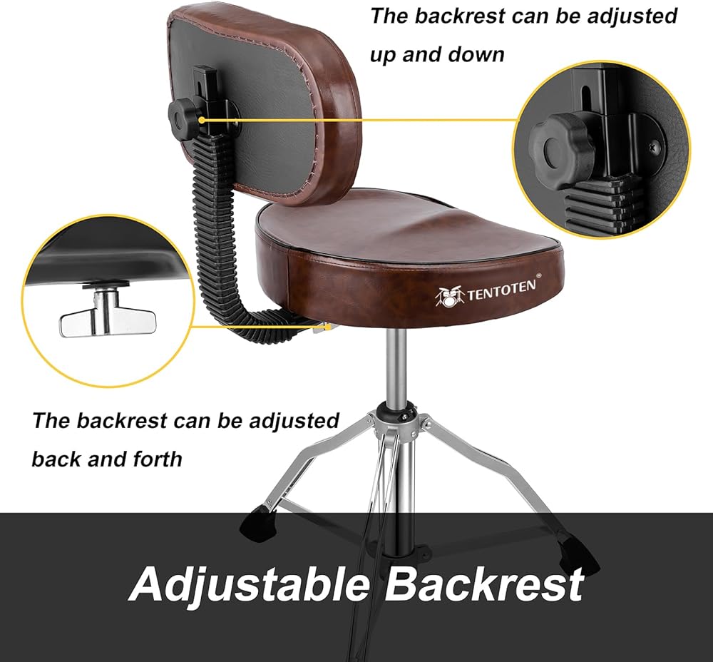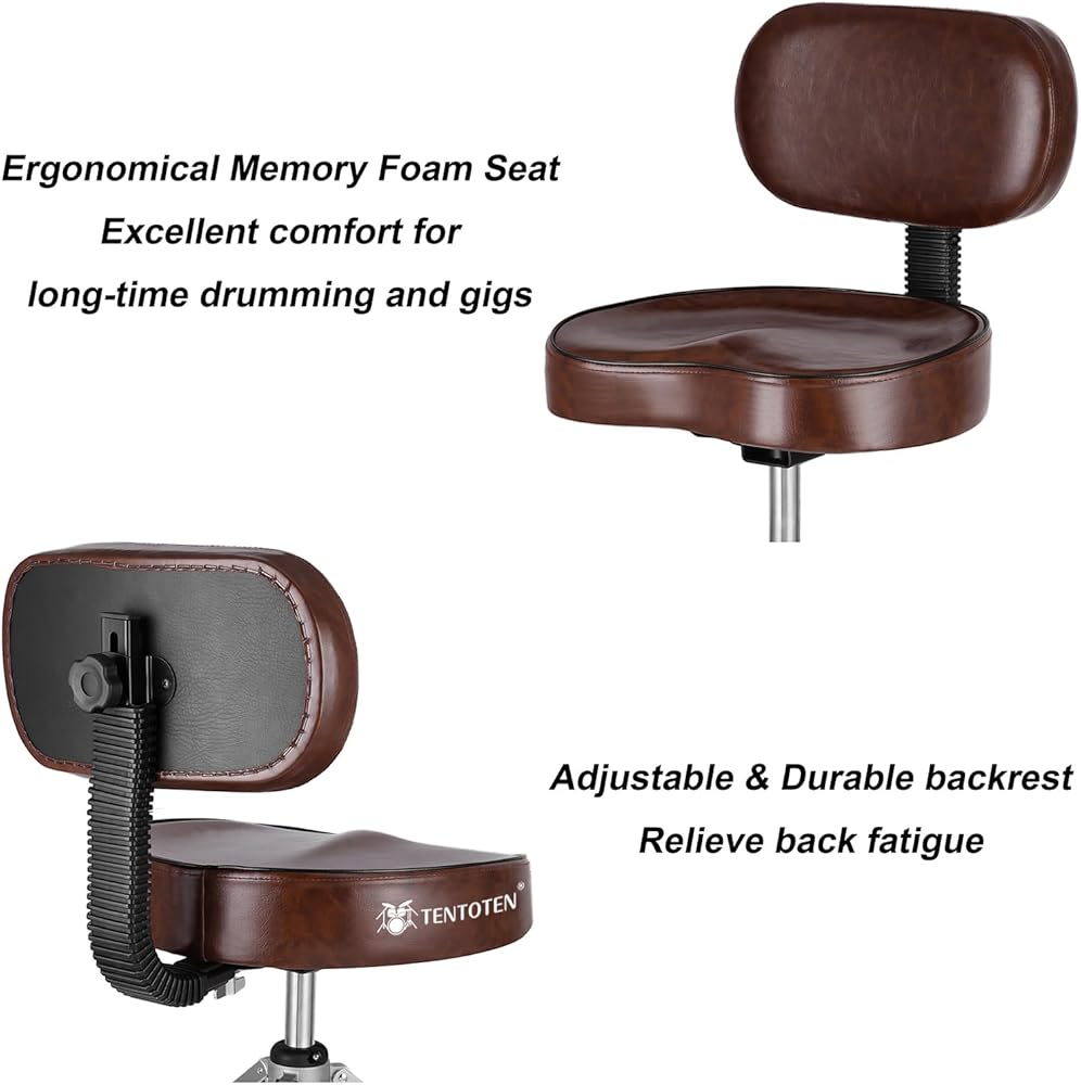 مقعد مريح مع ظهر - يتميز كرسي الطبل بمقعد مبطن مريح، يمكن أن يوفر الدعم الكامل لساقيك وخصرك. يمكنها حمل 400 باوند بسهولة. يمكن لمسند الظهر أن يجعل ظهرك أقل تعبًا أثناء الطبول على المدى الطويل.