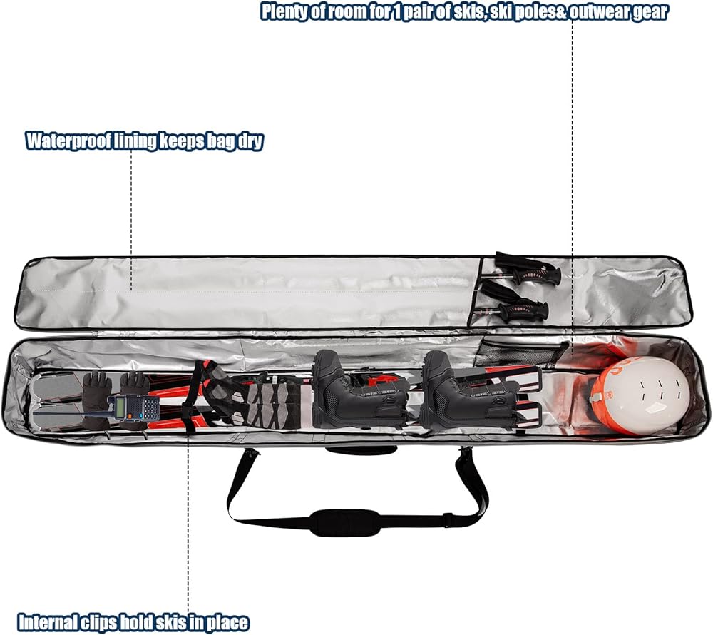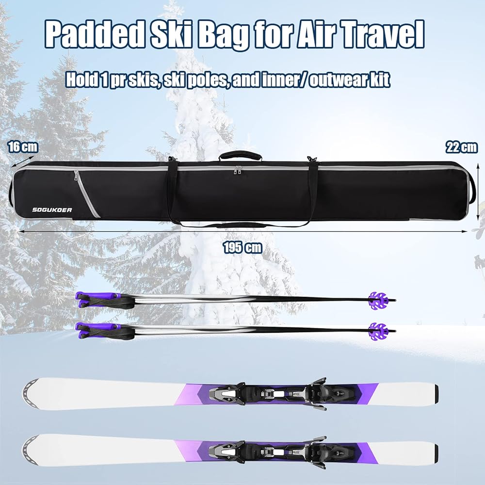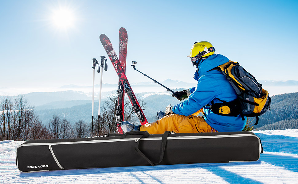 The chic and timeless design of the transport bag for outdoor equipment enables the safe transport of a wide variety of skis. Padded lining, 2 integrated webbing buckles- SOGUKOER ski bag is perfect as a ski bag to prevent shocks and protect your ski equipment from damage during travel, transport, luggage handling or skiing
