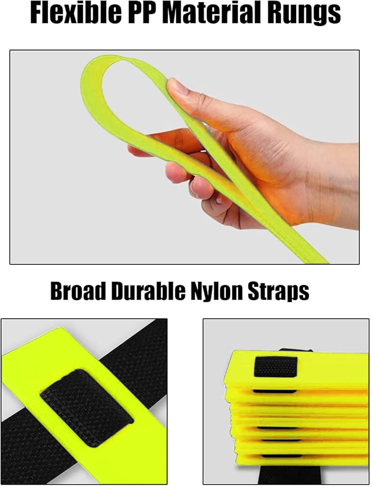 Light Agility Ladder: 40 cm wide, soft plastic makes it flexible and not easy to break for a better training experience, Constructed of nylon agility speed ladder with durable plastic rungs, can withstand the impact of stepping or kicking.