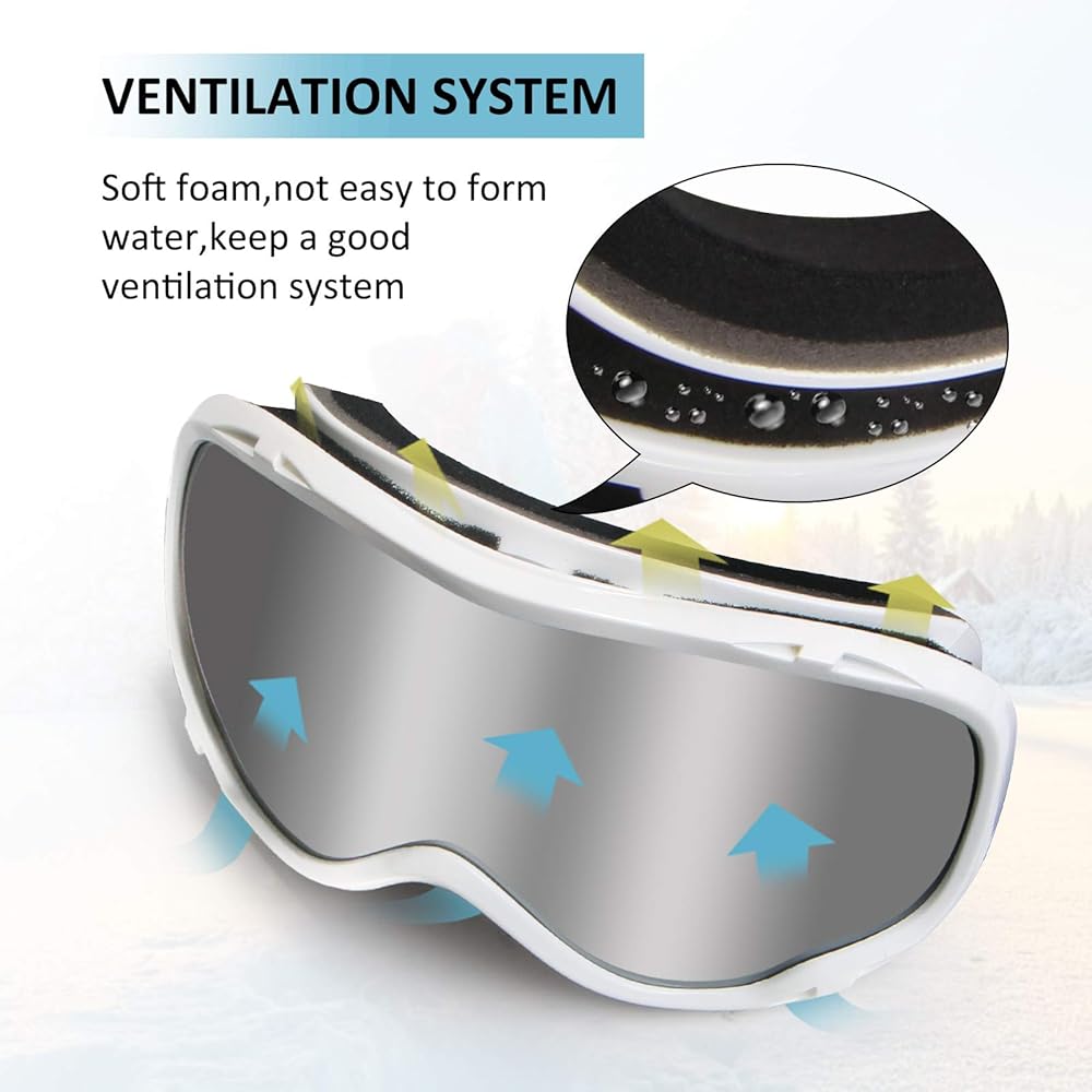 • ❄ نظام التهوية: نظارات التزلج مكونة من 3 طبقات من الإسفنج المسامي، والإسفنج الناعم، مما يوفر تهوية جيدة لتبديل الهواء البارد والساخن بحرية، وجيدة للحماية من الرياح القوية والغبار والصدمات.