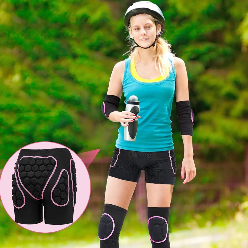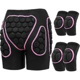 Lewtemi 3 مجموعة واقية ثلاثية الأبعاد مبطنة للورك EVA سراويل قصيرة وسادات الركبة وسادات الكوع مجموعة حماية الشتاء وسادات الورك سميكة غير قابلة للانزلاق كم الركبة واقي الكوع للرجال والنساء والأطفال والتزلج على الجليد (أنيق، صغير)