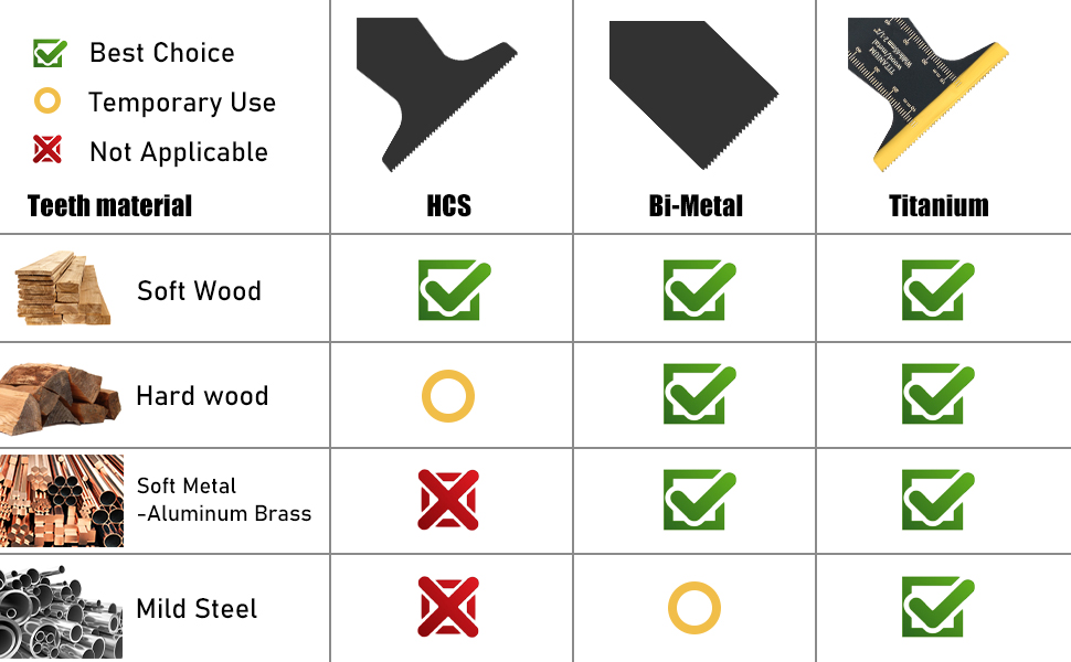 【Titanium Coating】 This oscillating saw blades with Titanium coated teeth , which are more durable than bi-metal oscillating multitool blades in actual work.