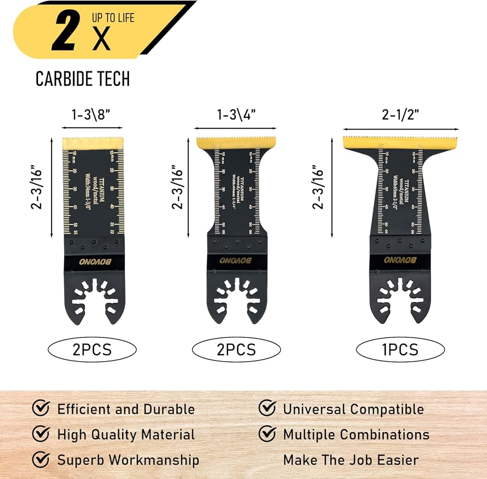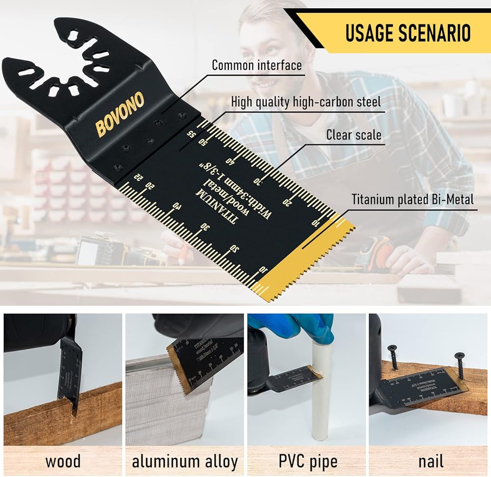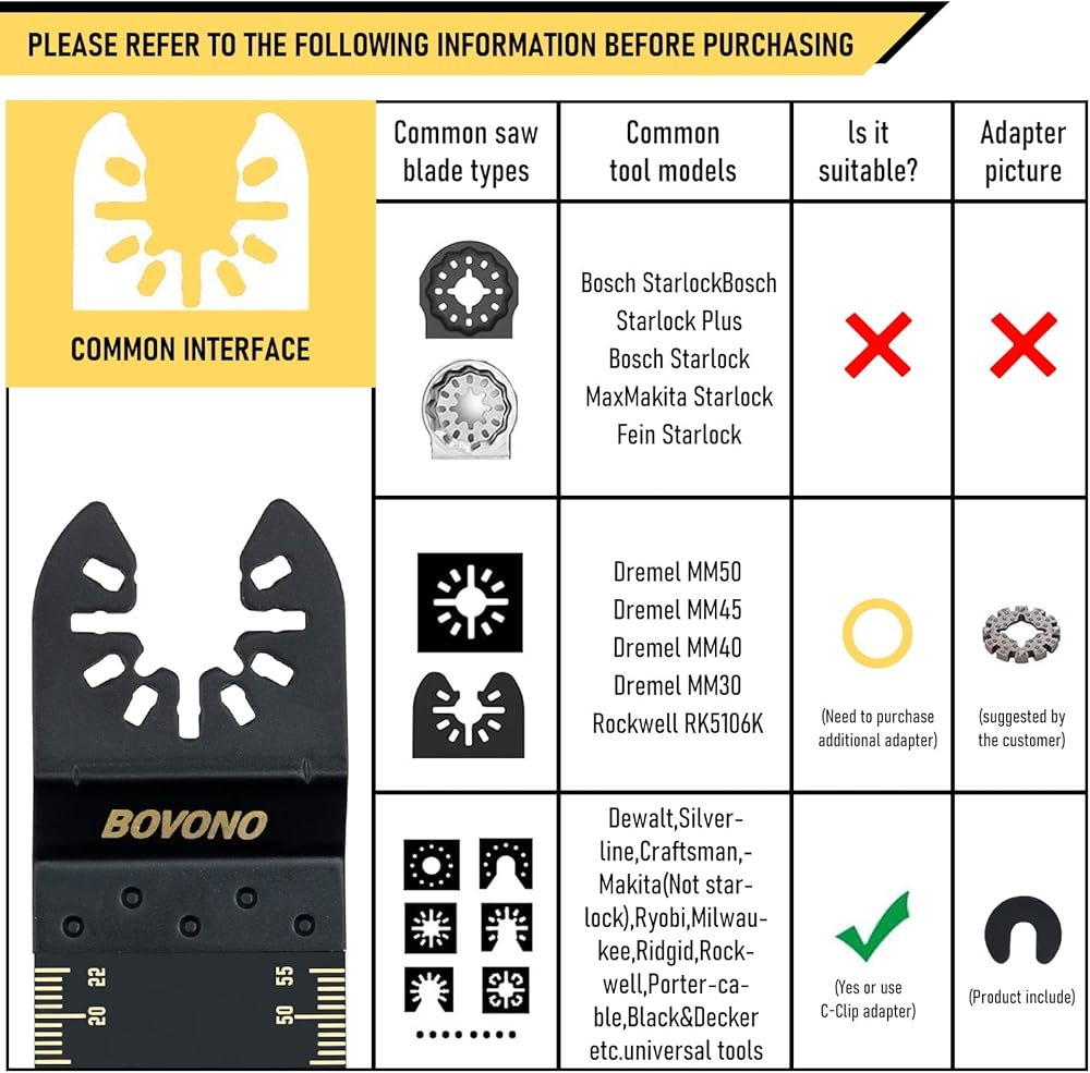 【More Compatible】 BOVONO quick release saw blades are compatible with most brands of oscillating tools on the market like Fein, Ryobi, Milwaukee, Rockwell, Black & Decker, Porter Cable, Craftsman and More. NOTE: Not recommended for starlock interface system.