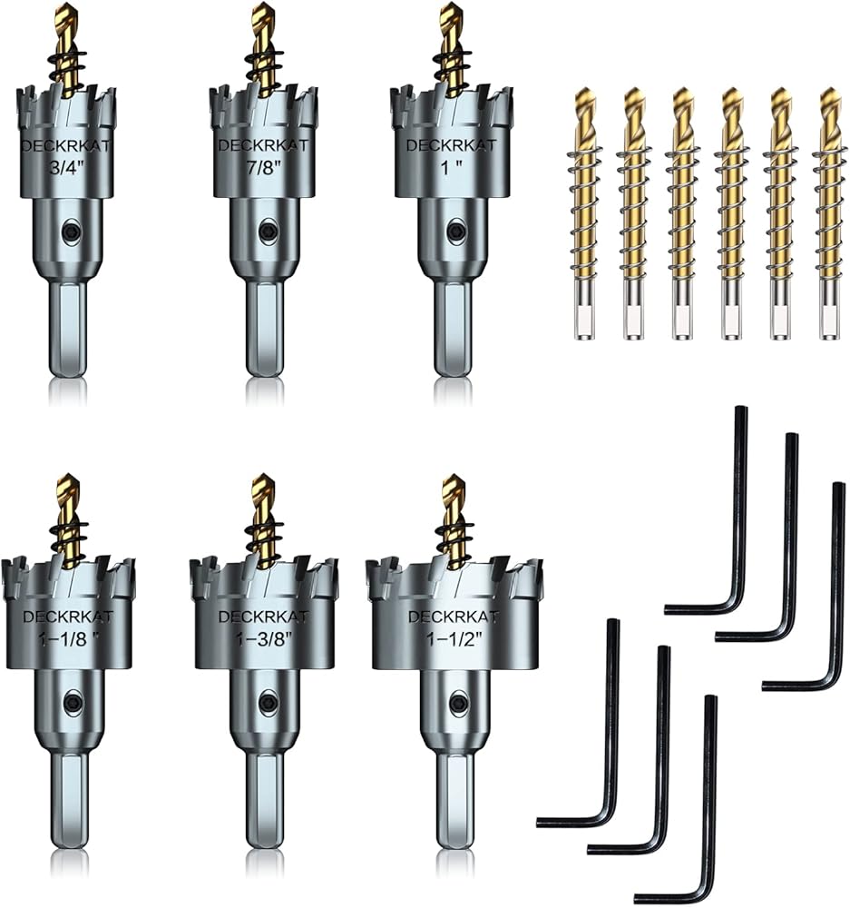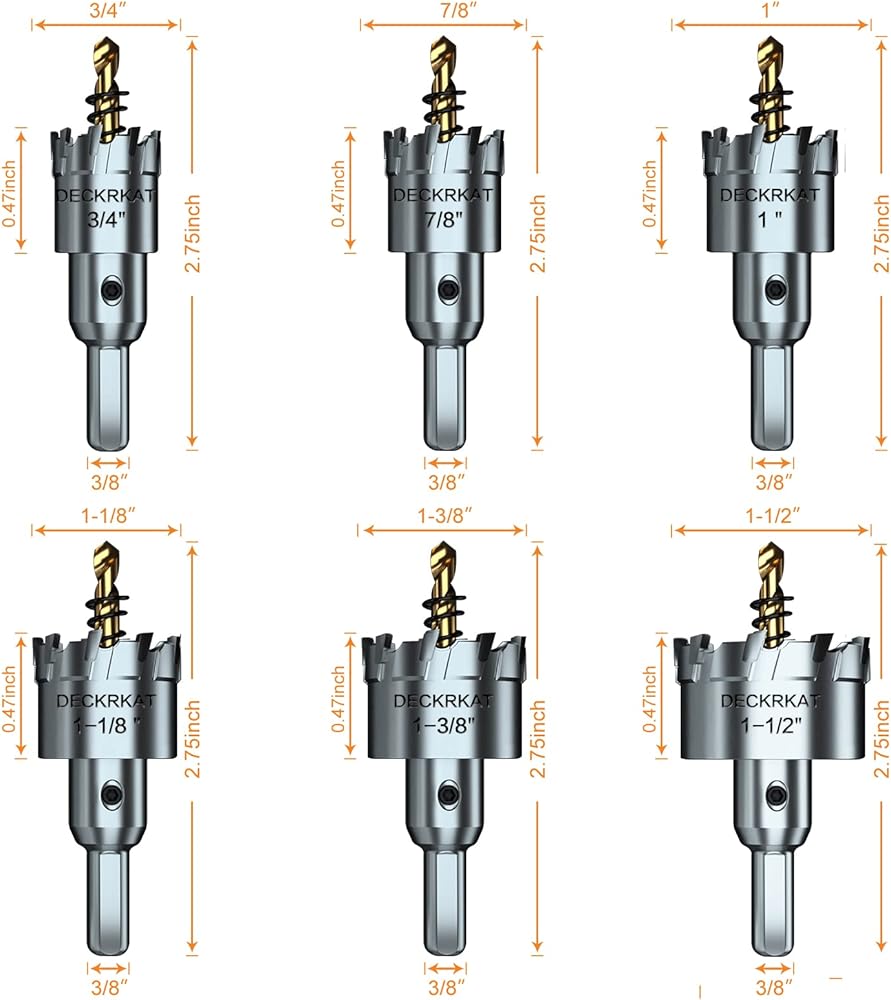 مجموعات مناشير ثقب متنوعة ذات 6 أحجام: مجموعة واحدة تلبي احتياجات أحجام الفتحات المختلفة في مشاريعك؛ 3/4 بوصة (19 ملم)، 7/8 بوصة (22 ملم)، 1 بوصة (25 ملم)، 1-1/8 بوصة (29 ملم)، 1-3/8 بوصة (35 ملم)، 1-1/2 بوصة (38 ملم) ) 6 قطع إضافية من رؤوس الثقب التجريبية ومفاتيح سداسية