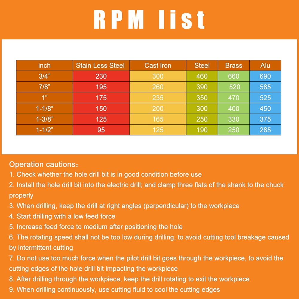 نصائح المستخدم: يرجى البدء في الحفر بعزم دوران أقل وسرعة أقل عندما تعمل اللقمة التجريبية فقط، ورفع السرعة عندما يلمس المنشار الثقب السطح، واستخدام زيت القطع كمواد تشحيم لمنع حرق اللقمة أو كسرها.