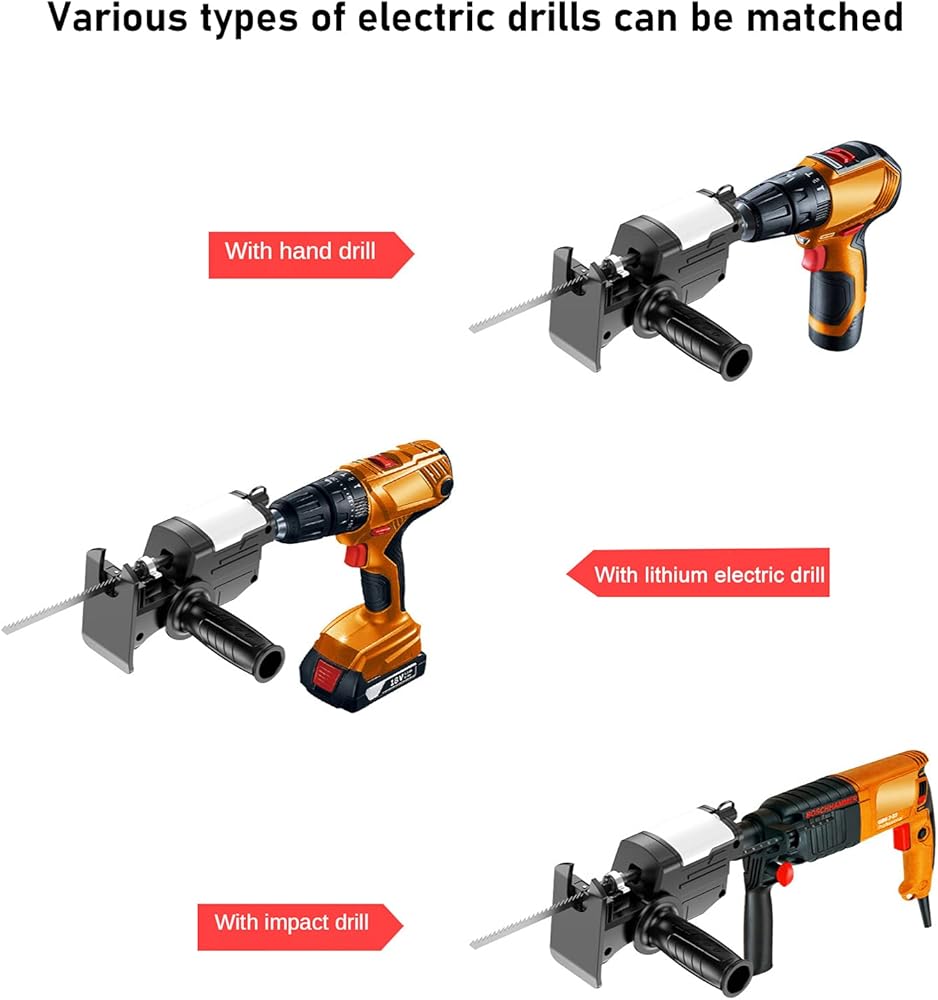 ✔️✔️【Applicable for all kinds of drills】: Our small saw drill accessories are suitable for all kinds of drills to realize electric drills into electric saws. One machine can be used for multiple purposes to realize fast cutting. It can be directly used for electric drills, electric drills, percussion drills, and cordless electric drills.