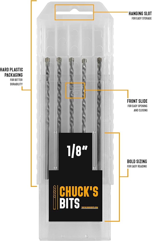 توفر Chuck's Bits لقم حفر عالية الجودة يصعب العثور عليها وبأسعار معقولة. تعتبر مجموعات قطع البناء ذات الحجم الواحد هذه مناسبة بشكل مثالي للمستخدمين الذين يميلون إلى تآكل حجم معين. يسمح طرف الكربيد باستخدام القطع في مثاقب المطرقة الإيقاعية، بينما توفر الساق المستديرة/المستقيمة أقصى قدر من المرونة لتركيب القطع في معظم المثاقب الدوارة والمطرقة السلكية واللاسلكية. القطع مصنوعة من الفولاذ الكربوني عالي الجودة للحصول على قوة فائقة، مع النحاس النحاسي لتوفير مقاومة أكبر للحرارة. تحافظ علبة التخزين البلاستيكية على لقم الثقب آمنة ومنظمة، في حين أن الحجم الكبير الموجود على العلبة يسمح بالتعرف الجاهز.