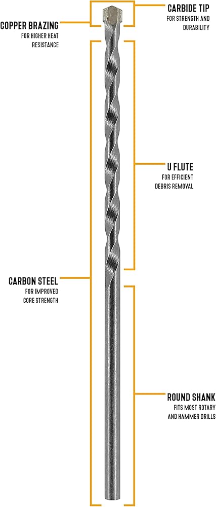 مجموعات لقم البناء ذات الحجم الواحد 5 قطع من تشاك (1/8 بوصة إلى 5/16 بوصة) من الفولاذ الكربوني المغطى بالكربيد للمطرقة الإيقاعية والمثاقب الدوارة (1/8 بوصة × 4 بوصة)