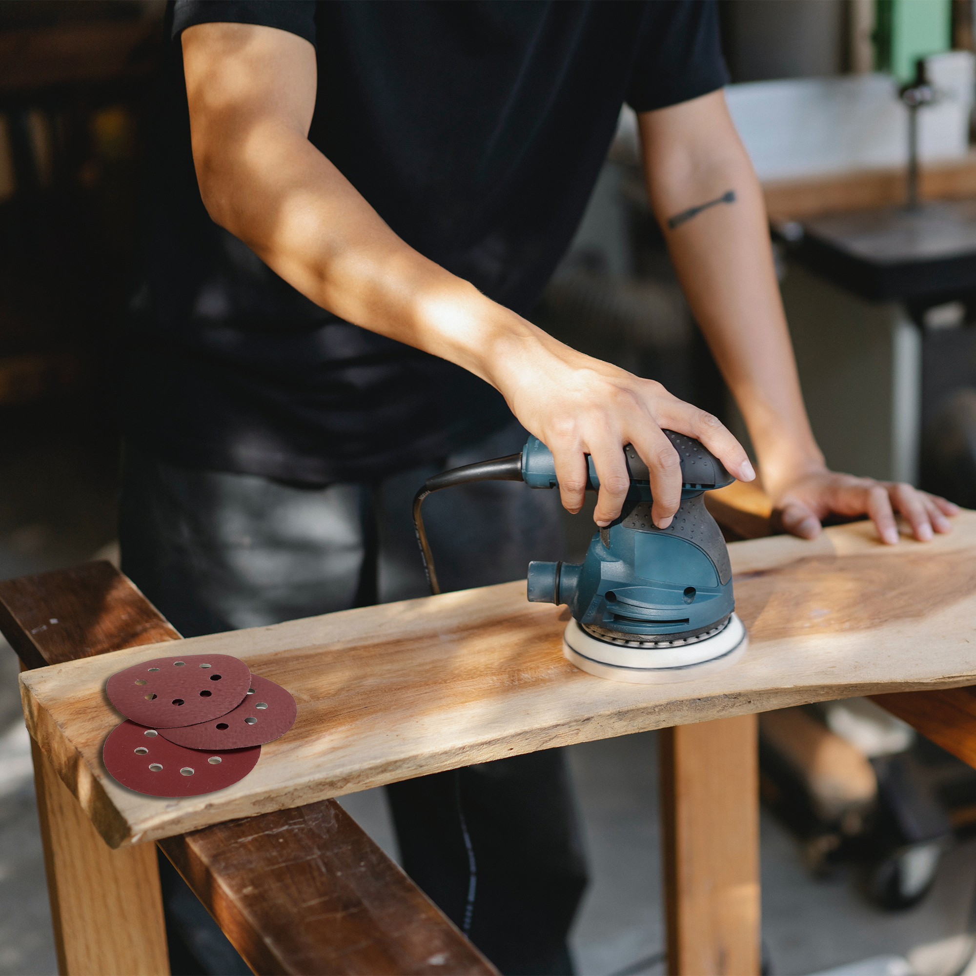 تشغيل بسيط: الجزء الخلفي اللاصق لقرص الصنفرة يجعل من السهل تركيبه أو استبداله. لن تسقط الوسادات عند استخدامها. تأكد من أن راحة ماكينة الصنفرة المدارية نظيفة قبل منع قرص الصنفرة.