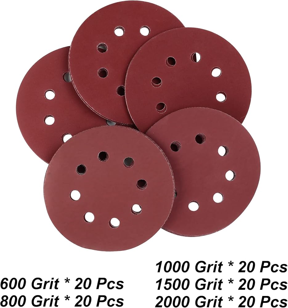 العبوة: توفر مجموعة ورق الصنفرة المدارية هذه 100 عبوة من ورق الصنفرة متعدد الحبيبات لتتمكن من التعامل مع العديد من المشروعات، 20 لكل منها 600# 800# 1000# 1500# 2000#. كلما زاد الرقم، كلما كان الحبيبات أنعم.